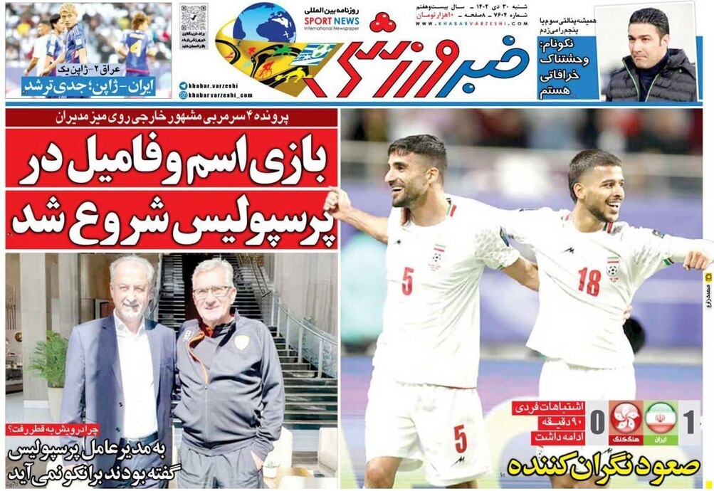 تصاویر/ صفحه نخست روزنامههای ورزشی شنبه ۳۰ دی ۱۴۰۲