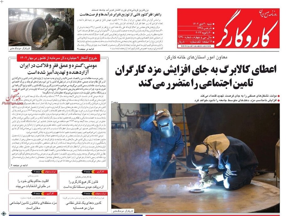 تصاویر/ صفحه نخست روزنامههای شنبه ۳۰ دی ۱۴۰۲