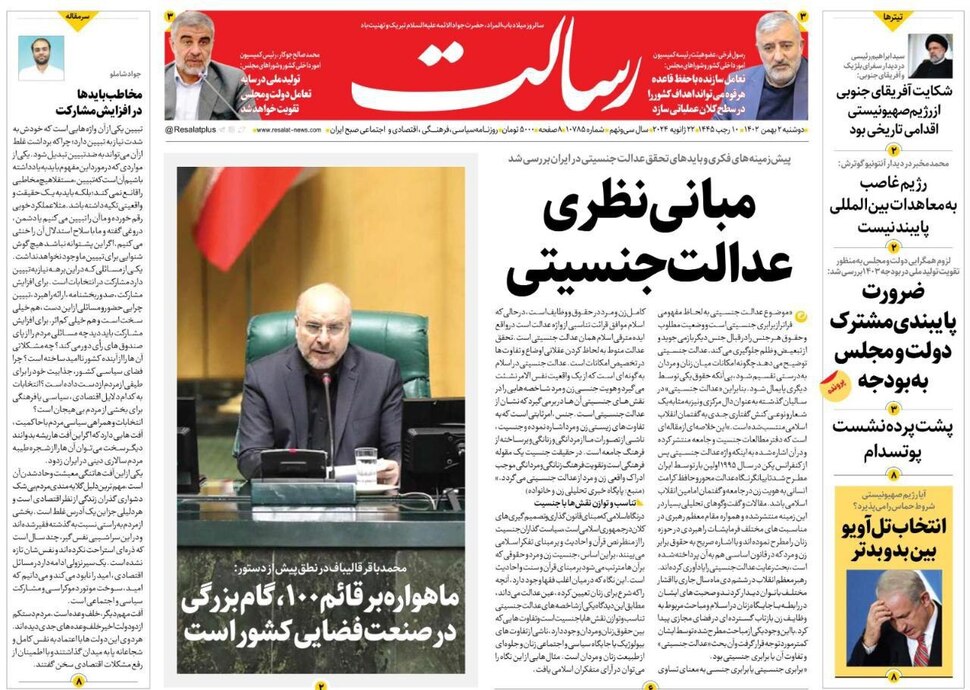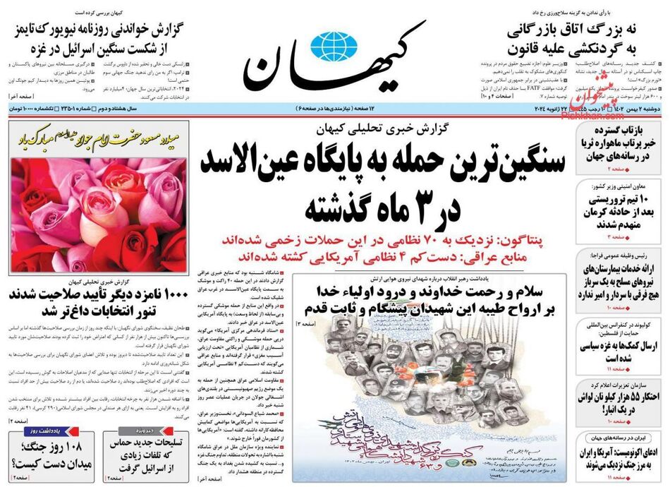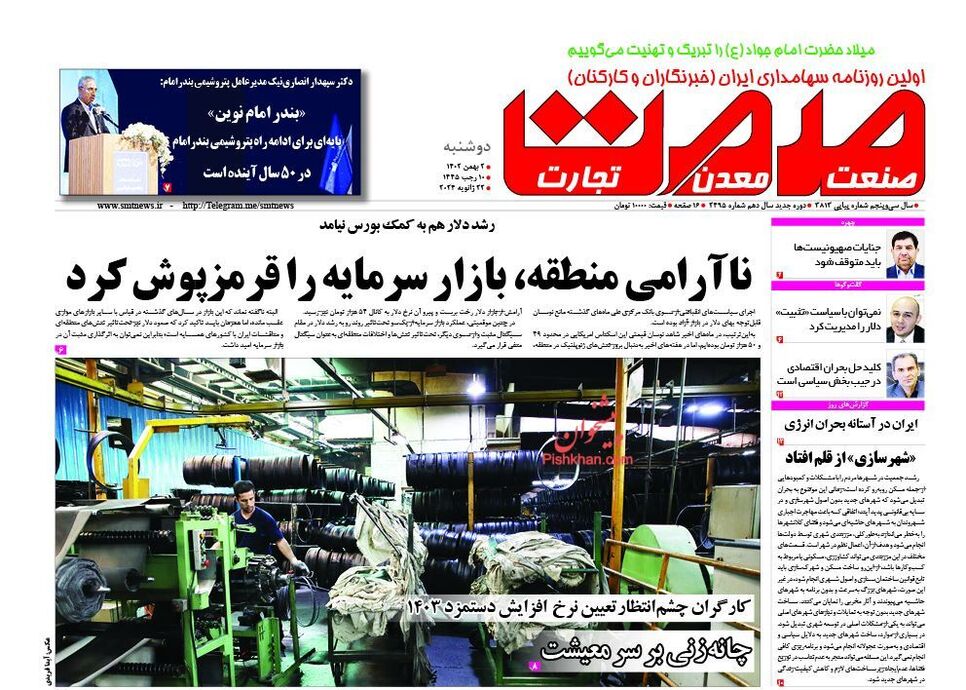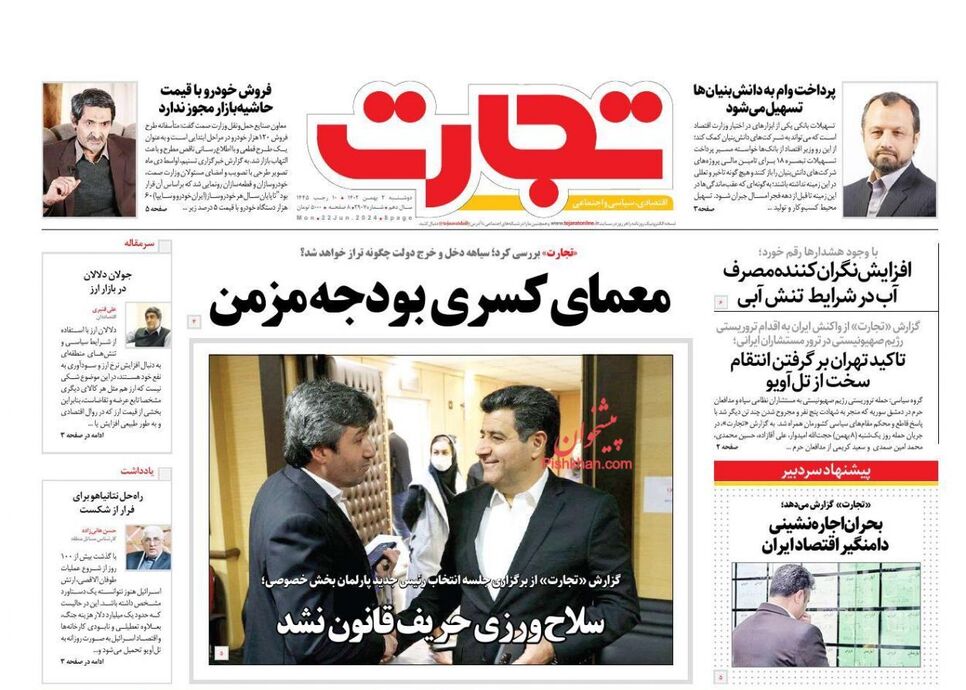 تصاویر/ صفحه نخست روزنامههای دوشنبه ۲ بهمن ۱۴۰۲