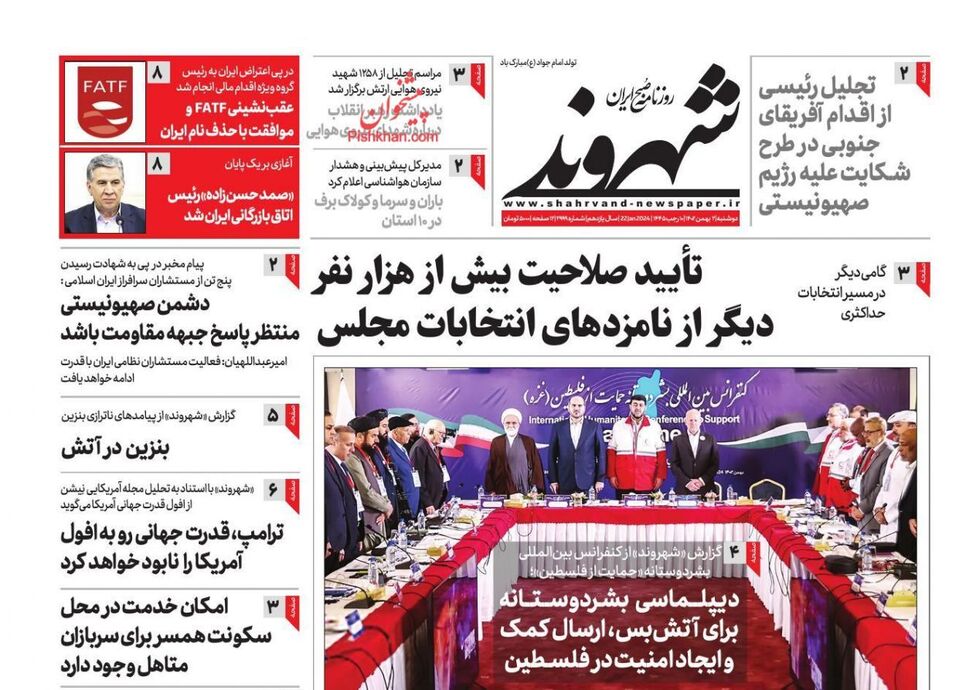 صفحه نخست روزنامهها - چهارشنبه ۲۵ تیر
