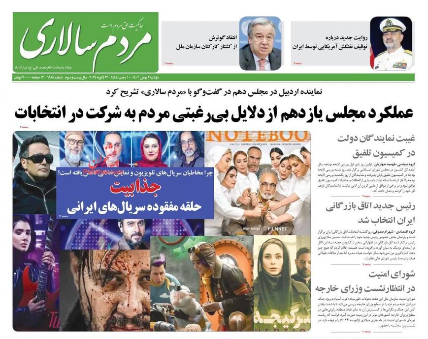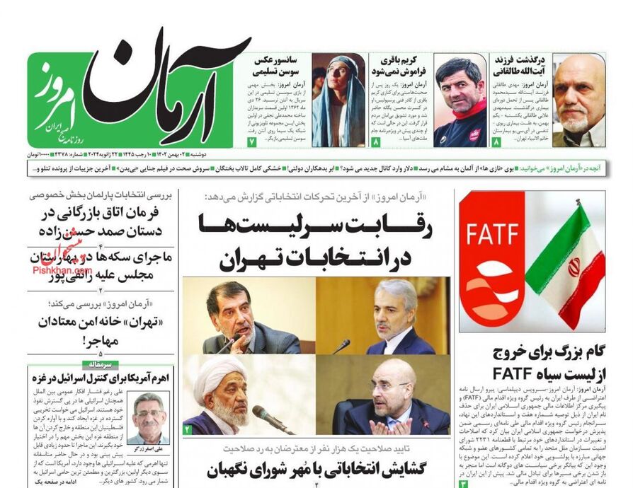 تصاویر| صفحه نخست روزنامه های امروز یکشنبه ۲۰ اسفند ۱۴۰۲