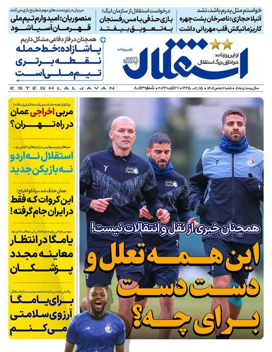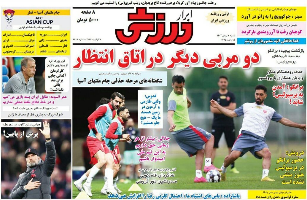 تصاویر/ صفحه نخست روزنامه‌های ورزشی شنبه ۷ بهمن ۱۴۰۲