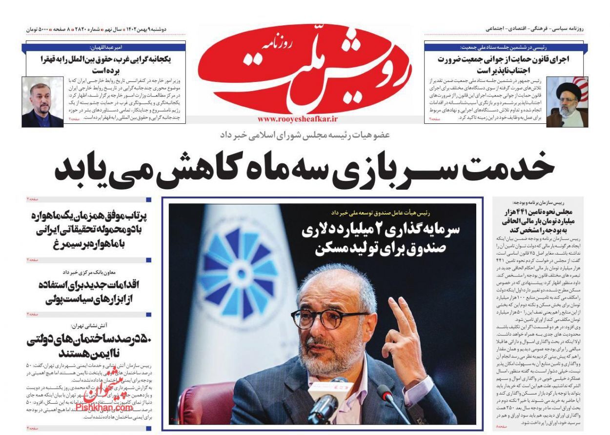 تصاویر/ صفحه نخست روزنامههای دوشنبه ۹ بهمن ۱۴۰۲