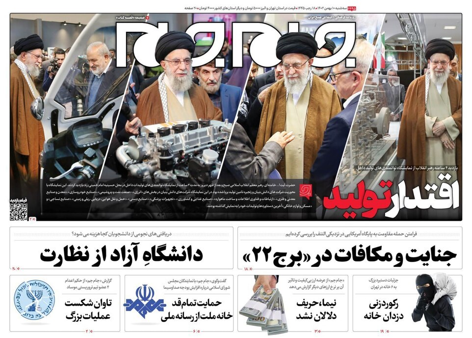 تصاویر/ صفحه نخست روزنامههای سهشنبه ۱۰ بهمن ۱۴۰۲