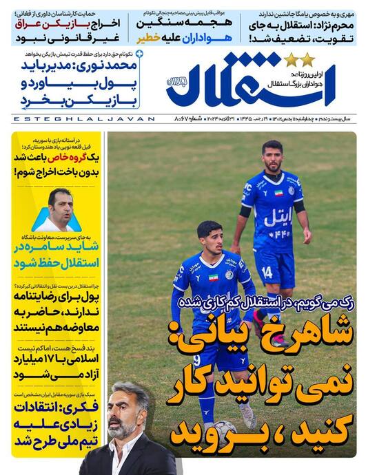 تصاویر| صفحه نخست روزنامههای ورزشی امروز شنبه ۱۹ اسفند ۱۴۰۲