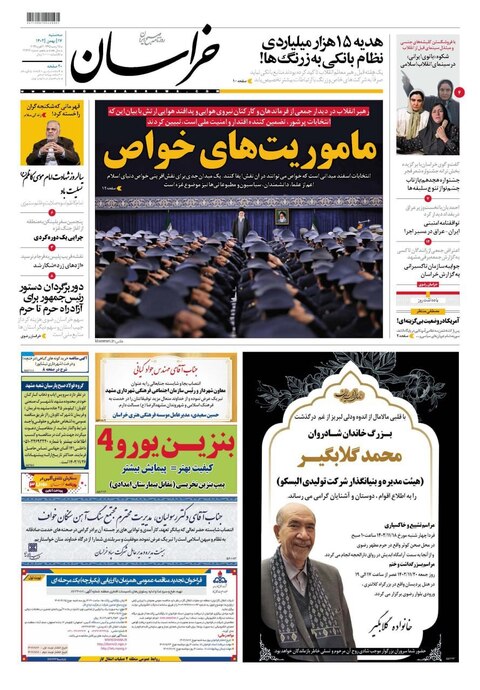 تصاویر/ صفحه نخست روزنامههای سهشنبه ۱۷ بهمن ۱۴۰۲