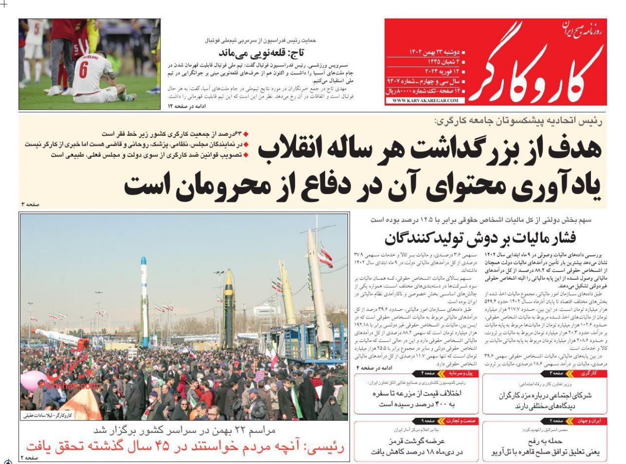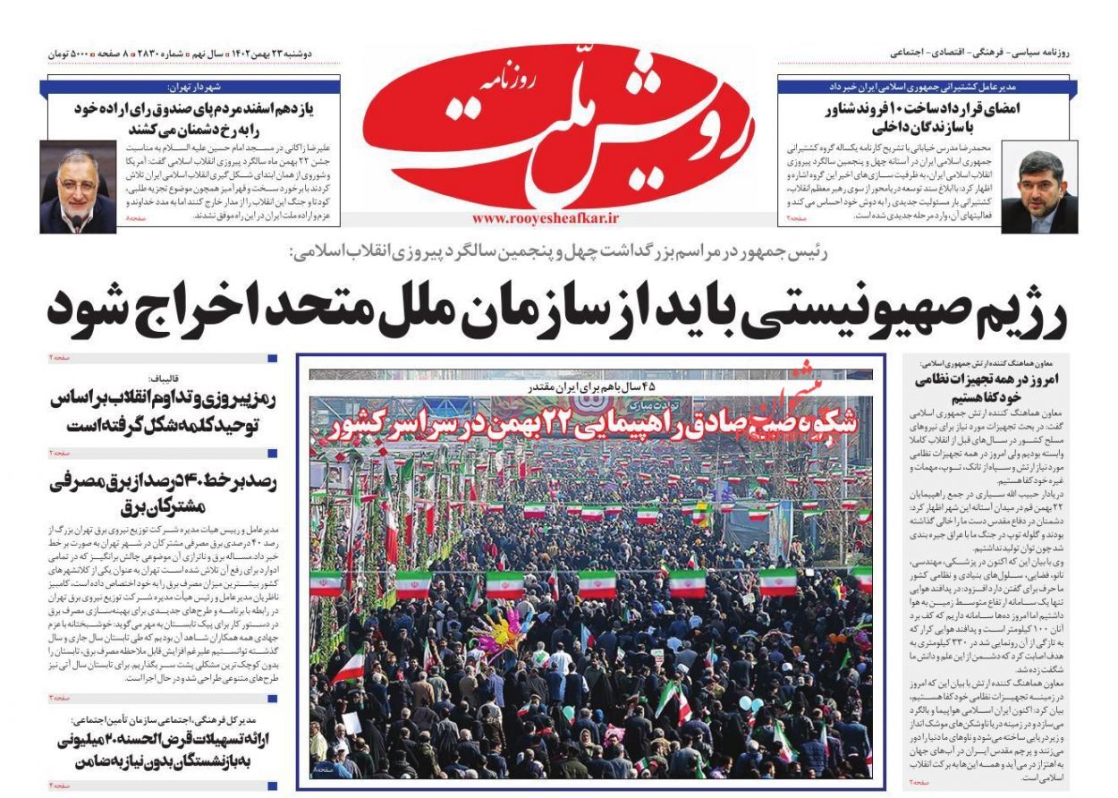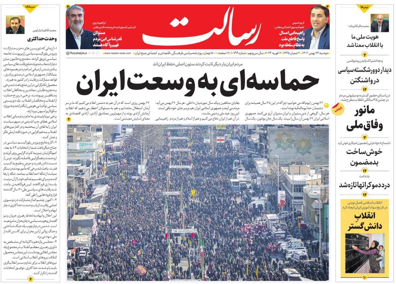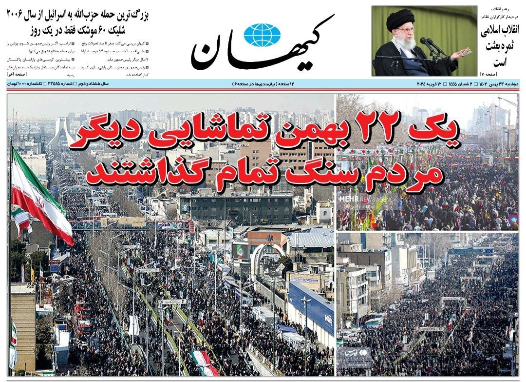 تصاویر/ صفحه نخست روزنامههای دوشنبه ۲۳ بهمن ۱۴۰۲