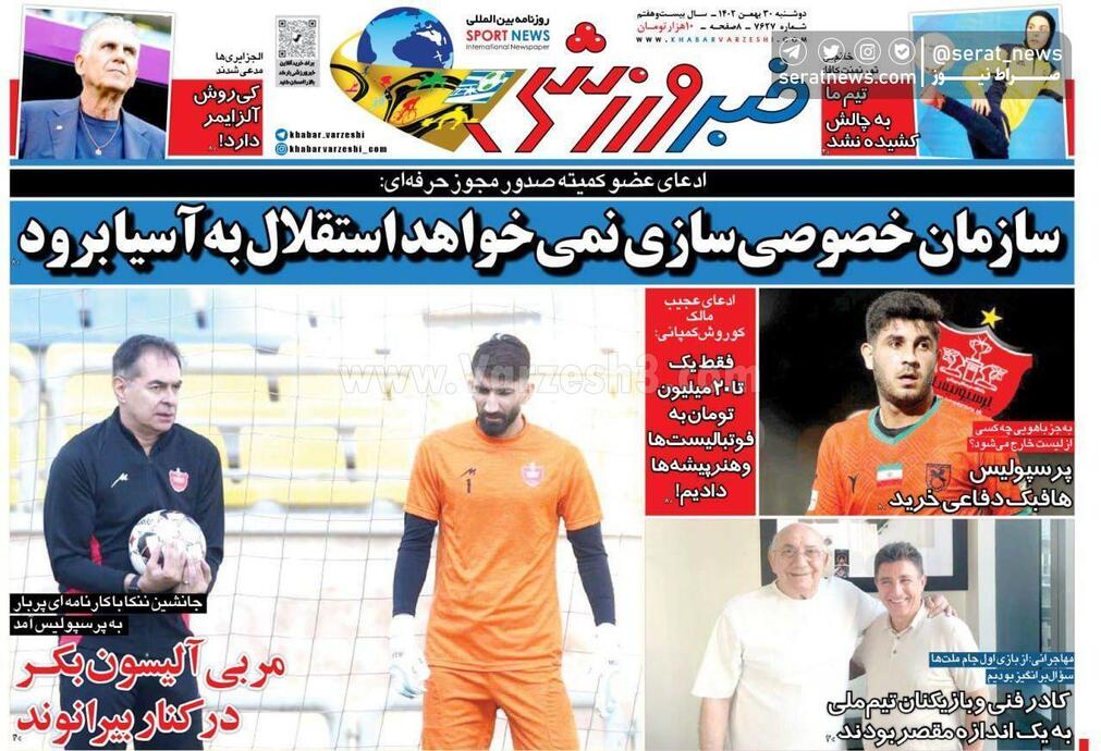 صفحه نخست روزنامهها - دوشنبه ۳۰ تیر
