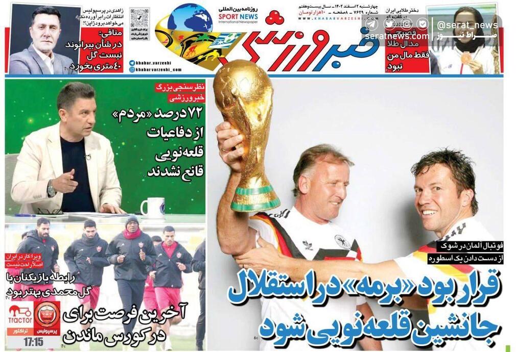 تصاویر / روزنامه‌‌های ورزشی چهارشنبه ۲ اسفند ۱۴۰۲
