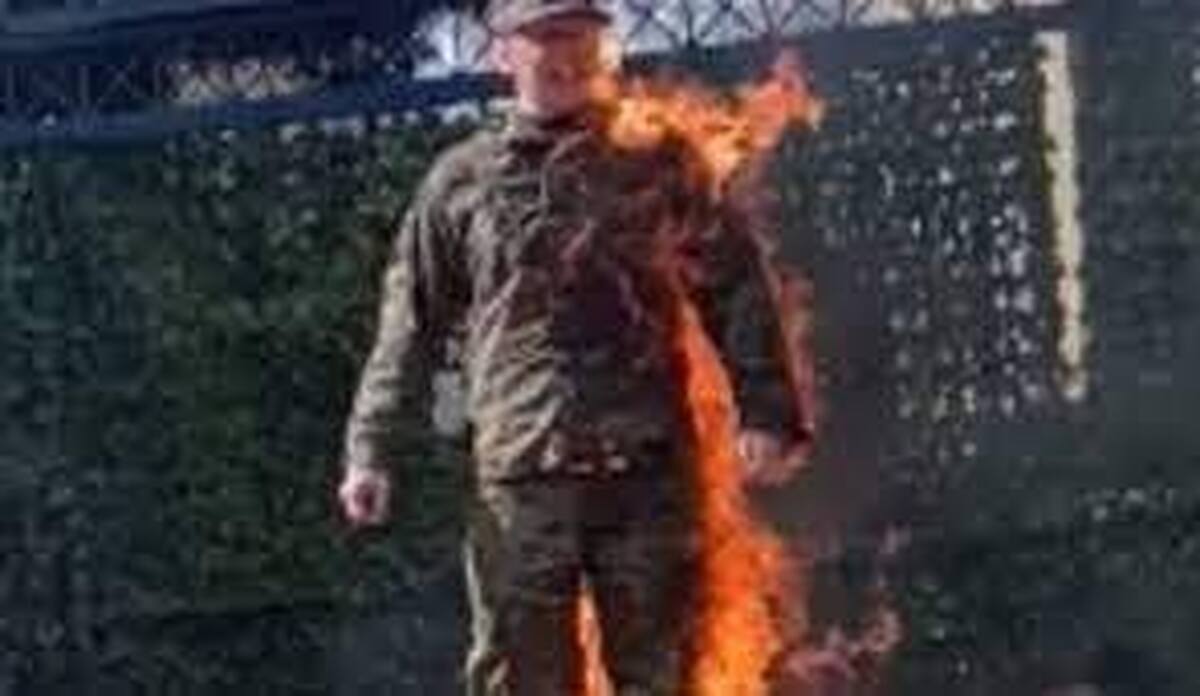 فیلم/ صحنه هولناک خودسوزی نظامی آمریکایی (18+)