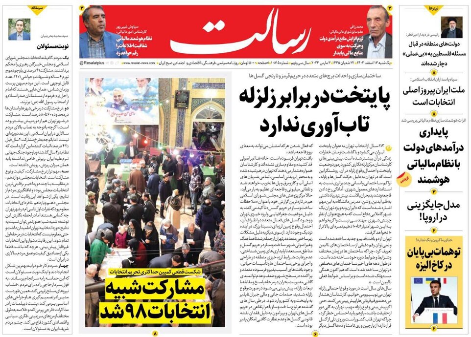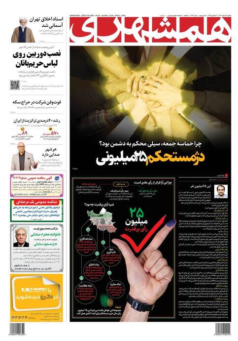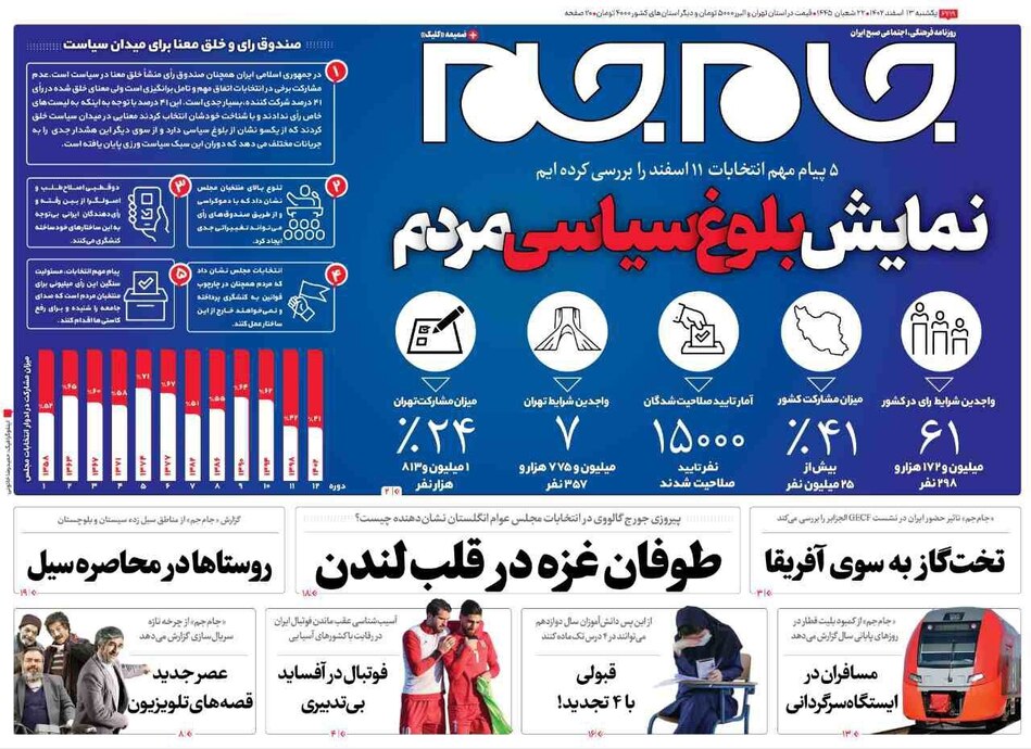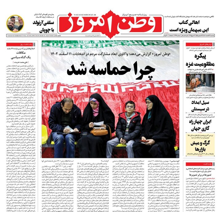 تصاویر/ صفحه نخست روزنامههای یکشنبه ۱۳ اسفند ۱۴۰۲