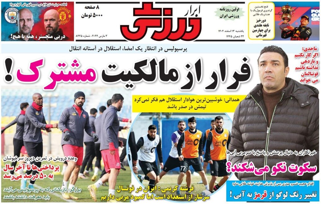 تصاویر/ صفحه نخست روزنامه‌های ورزشی یکشنبه ۱۳ اسفند ۱۴۰۲