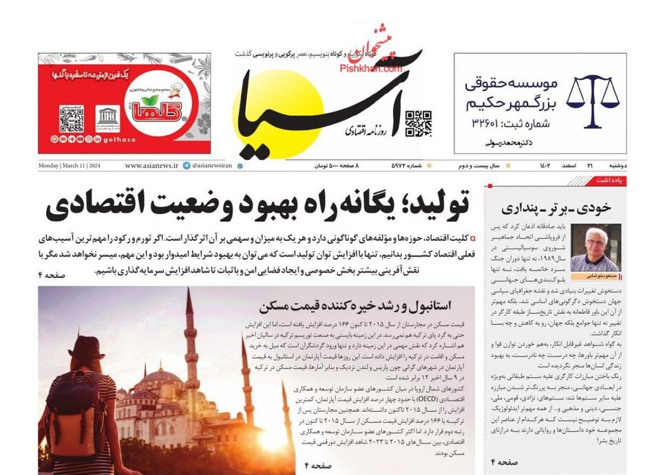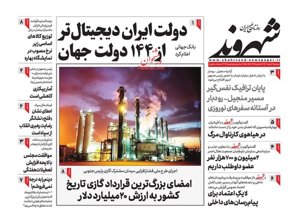 صفحه نخست روزنامه‌های امروز دوشنبه ۲۱ اسفند ۱۴۰۲ را مشاهده میکنید.