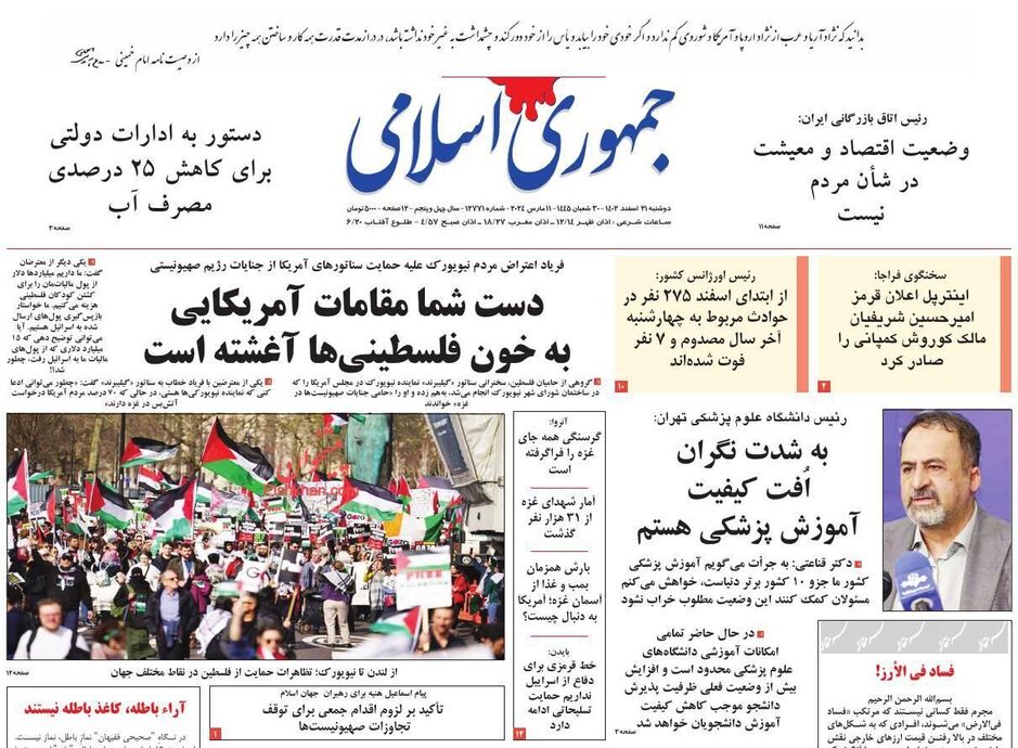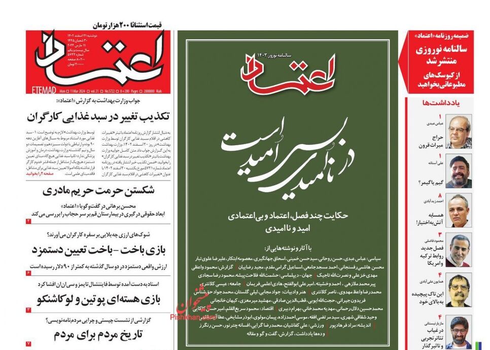 تصاویر| صفحه نخست روزنامه‌های امروز دوشنبه ۲۱ اسفند ۱۴۰۲