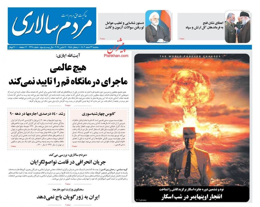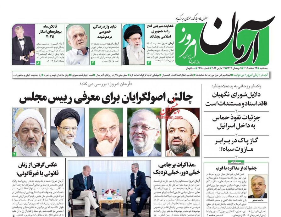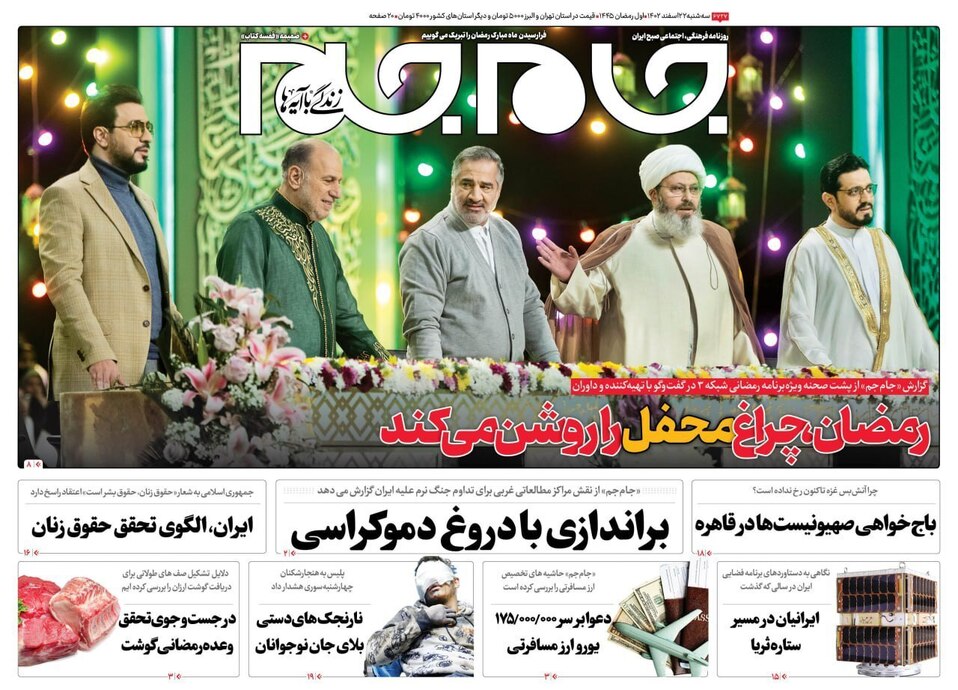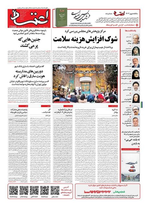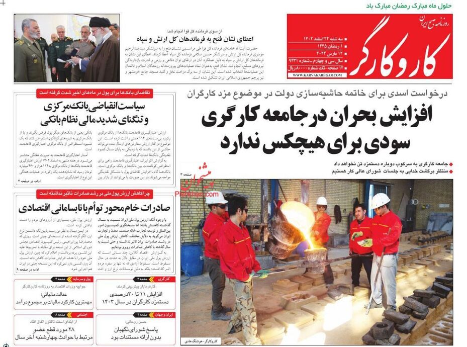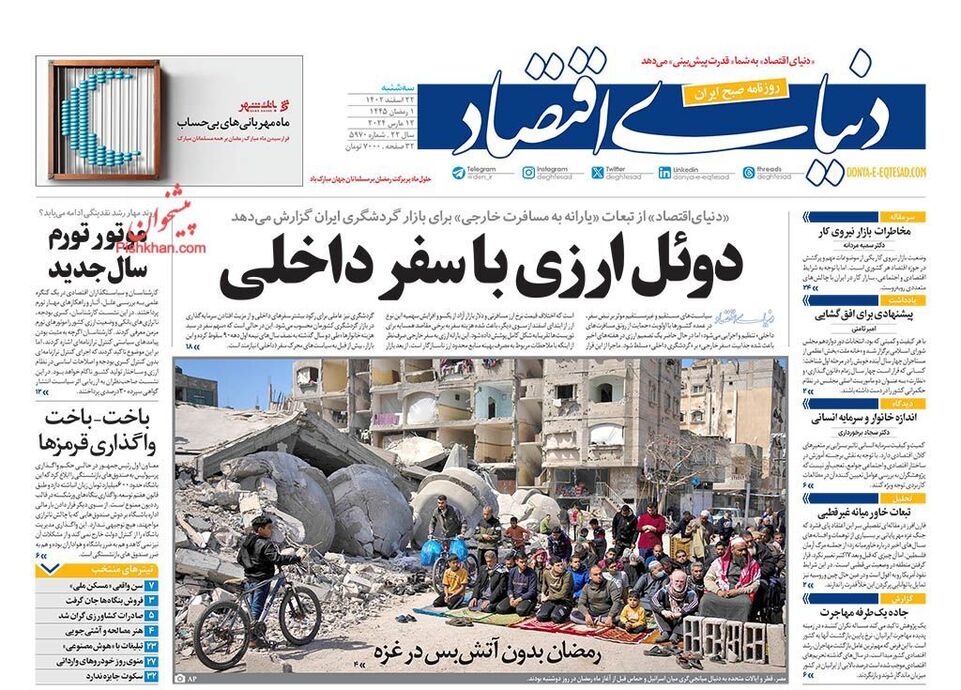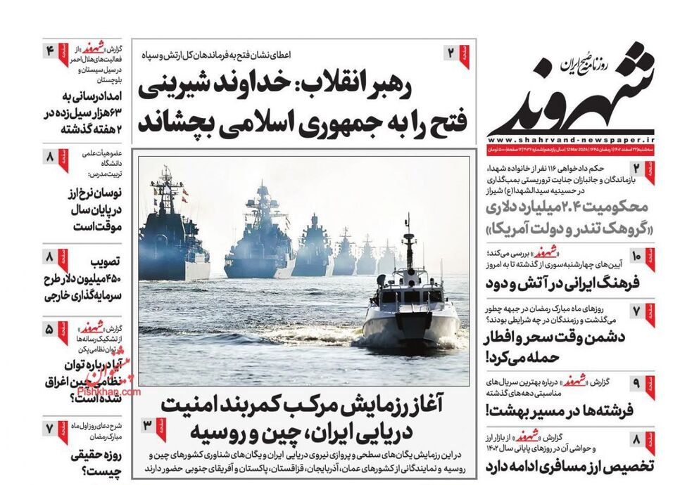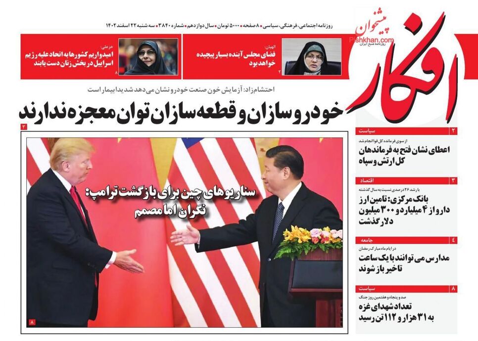 صفحه نخست روزنامه‌های امروز سه شنبه ۲۲ اسفند ۱۴۰۲ را مشاهده میکنید.