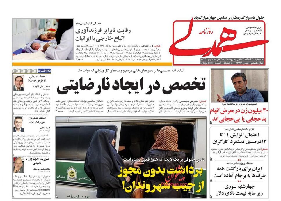 تصاویر| صفحه نخست روزنامه‌های امروز سه شنبه ۲۲ اسفند ۱۴۰۲