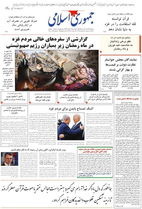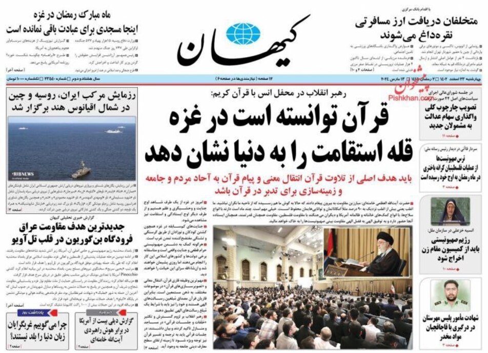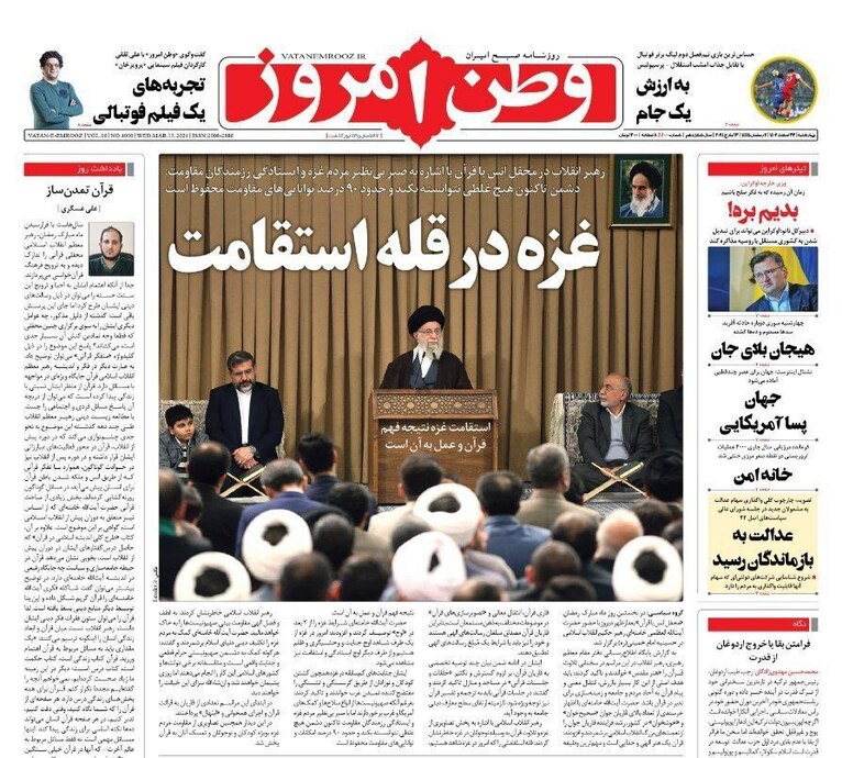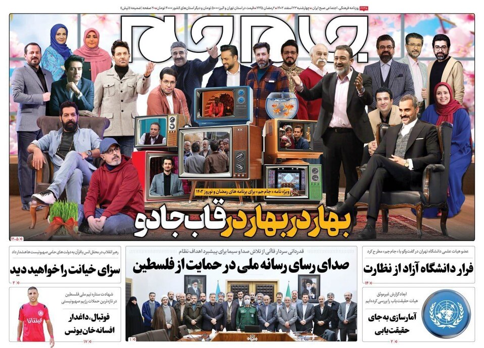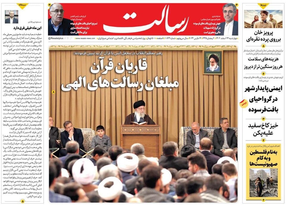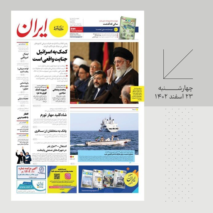 صفحه نخست روزنامههای امروز چهارشنبه ۲۳ اسفند ۱۴۰۲ را مشاهده میکنید.