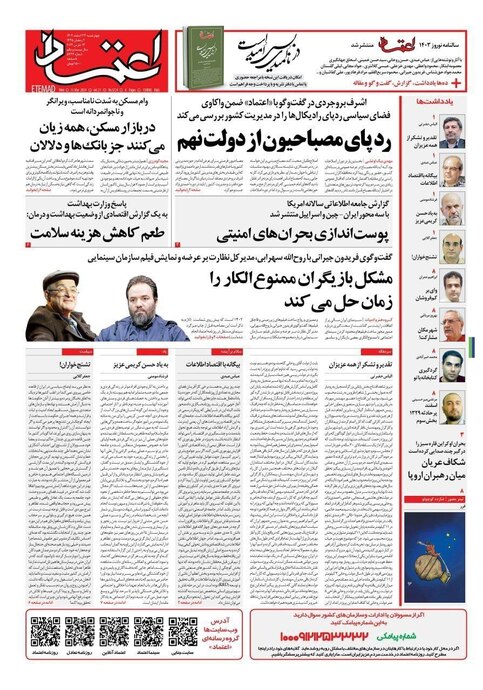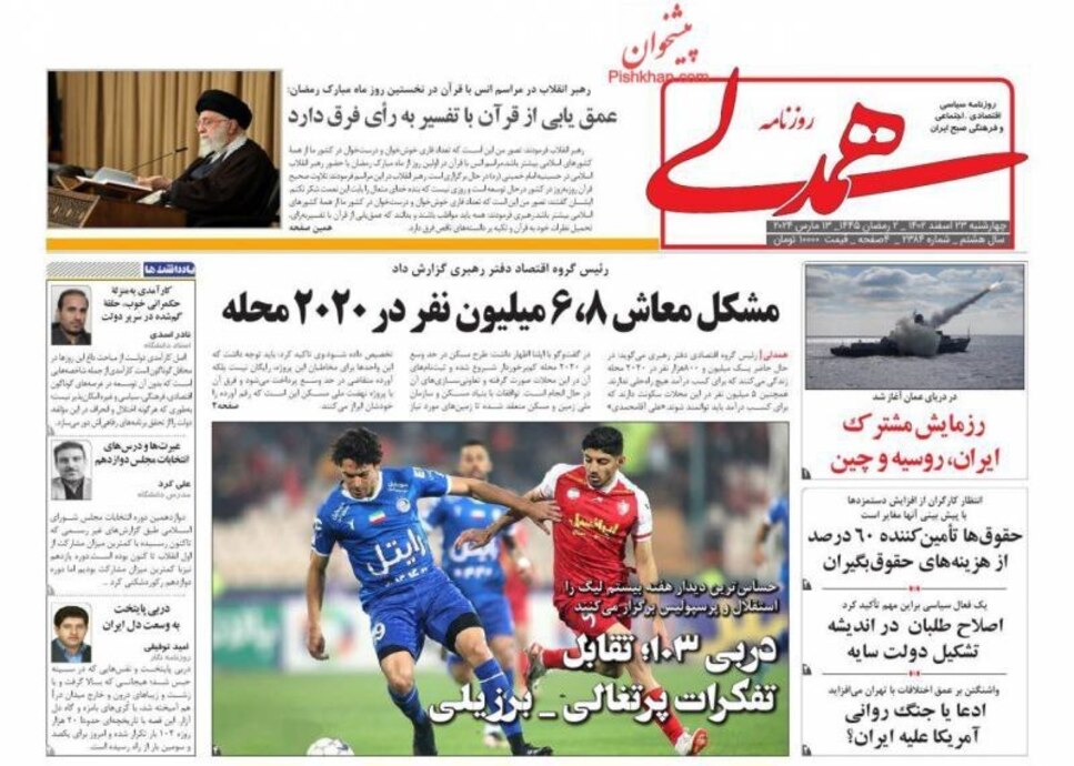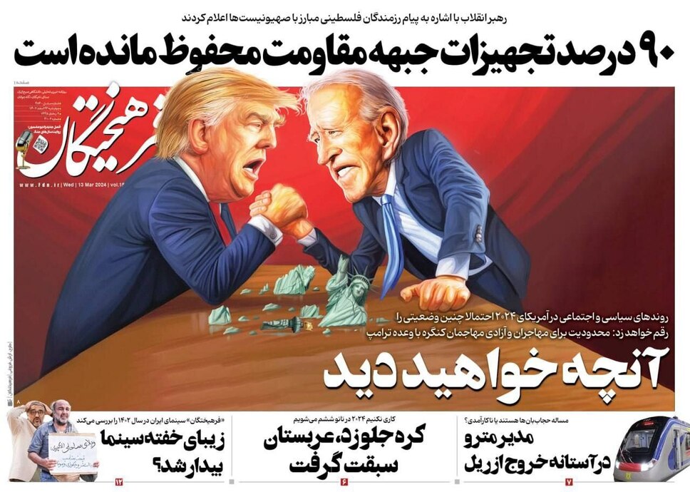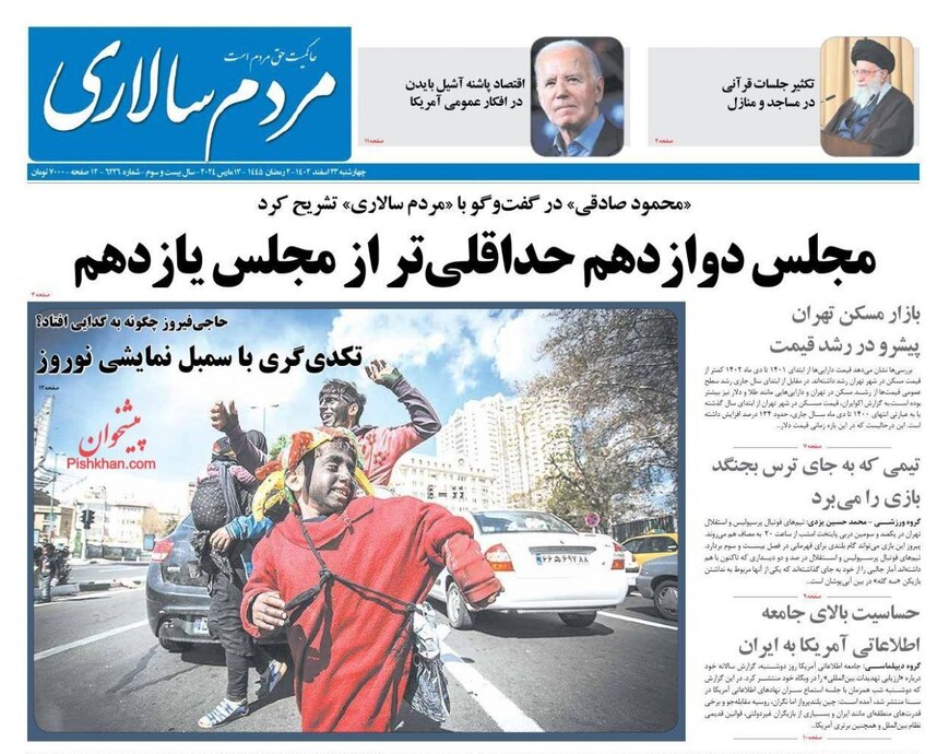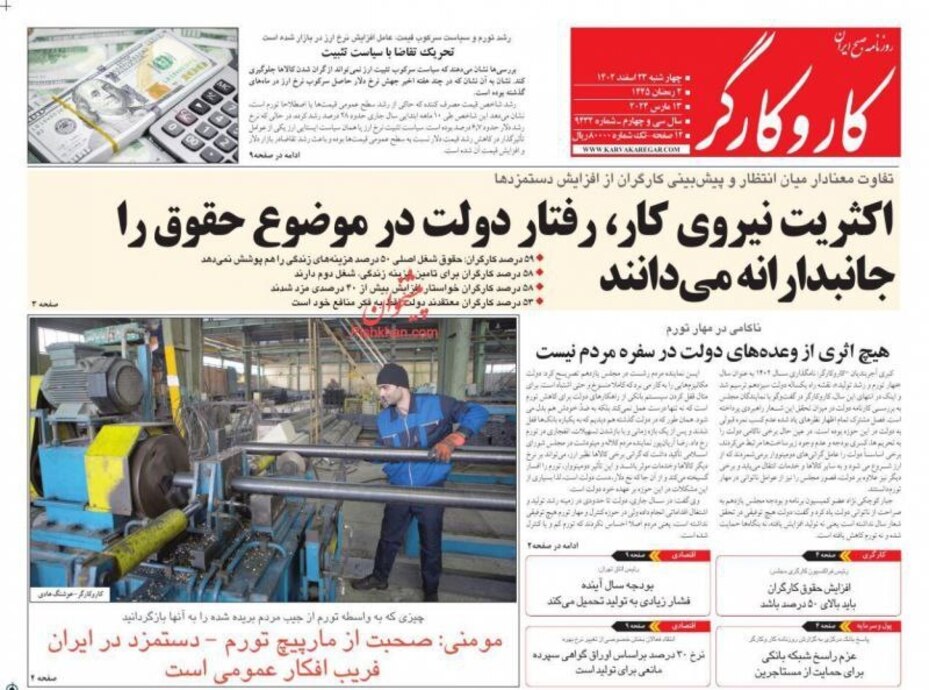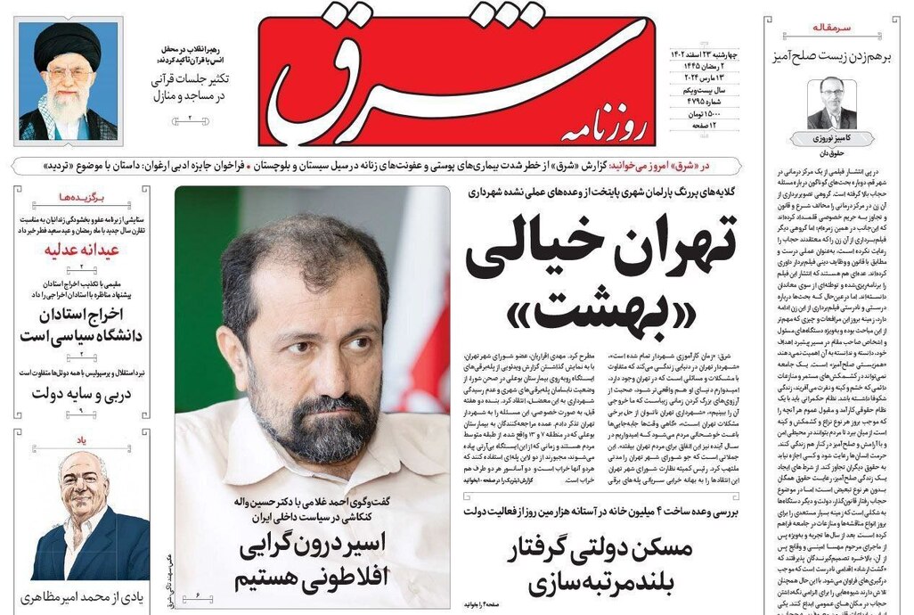 صفحه نخست روزنامههای امروز چهارشنبه ۲۳ اسفند ۱۴۰۲ را مشاهده میکنید.