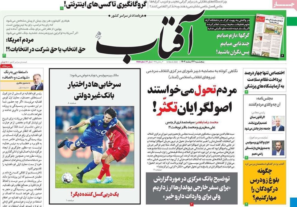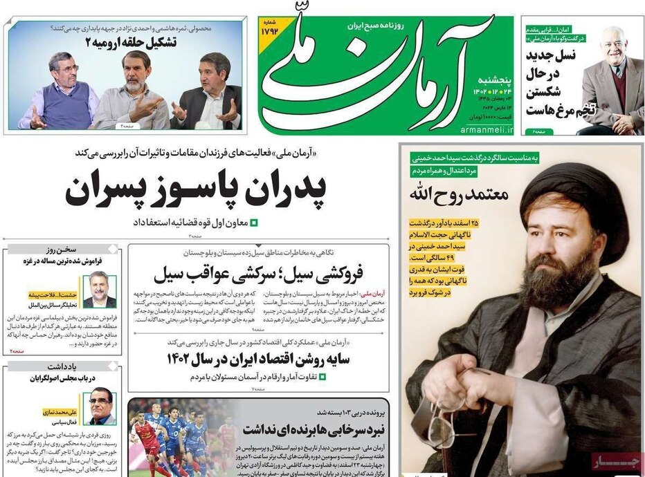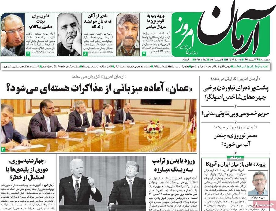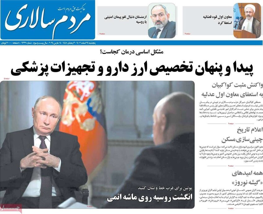 صفحه نخست روزنامههای امروز پنج شنبه ۲۴ اسفند ۱۴۰۲ را مشاهده میکنید.