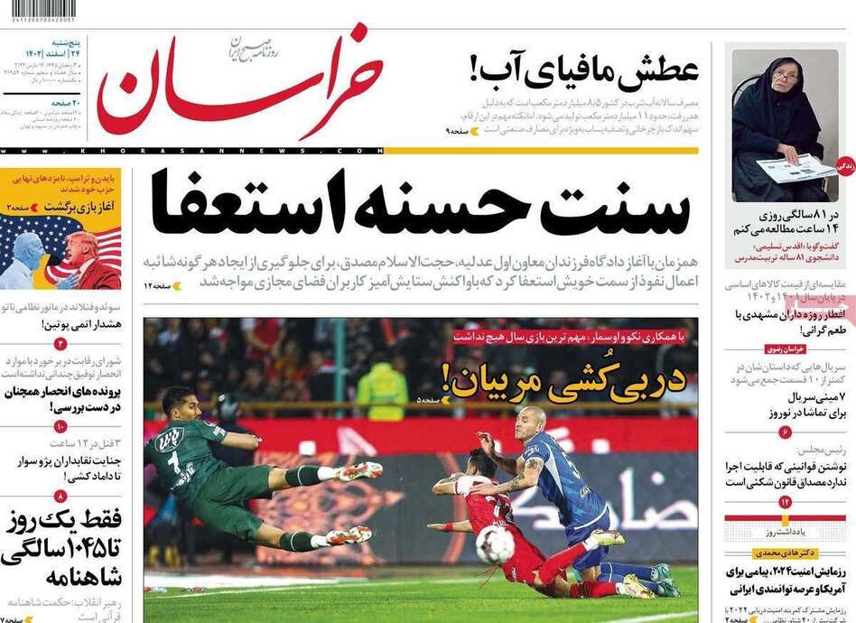 تصاویر| صفحه نخست روزنامههای امروز پنج شنبه ۲۴ اسفند ۱۴۰۲