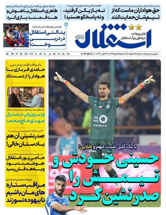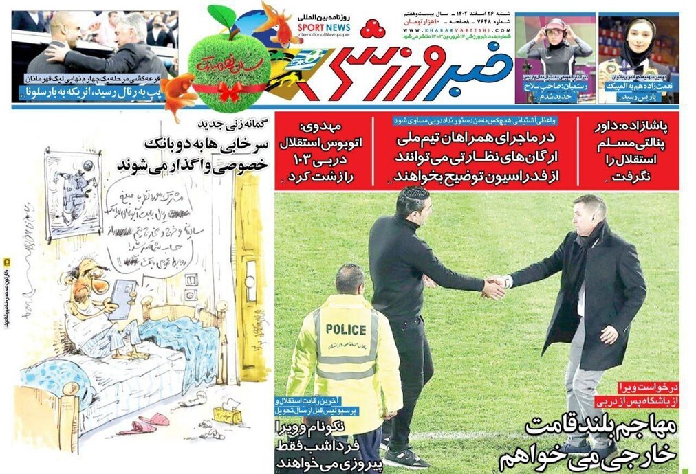 تصاویر| صفحه نخست روزنامههای ورزشی شنبه ۲۶ اسفند ۱۴۰۲