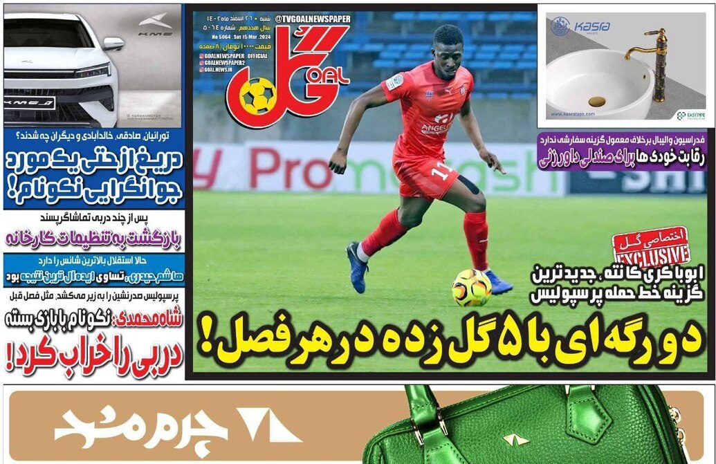 صفحه نخست روزنامههای ورزشی امروز شنبه ۲۶ اسفند ۱۴۰۲ را مشاهده میکنید.