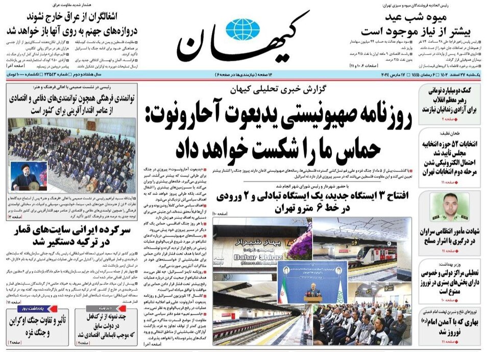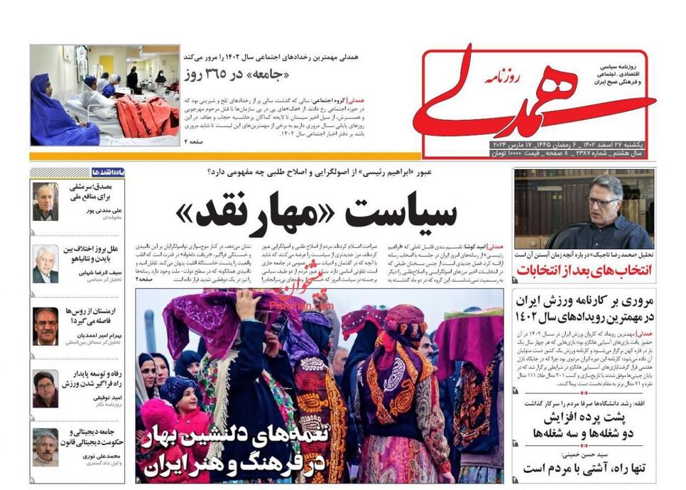 تصاویر| روزنامه های امروز یکشنبه ۲۷ اسفند ۱۴۰۲