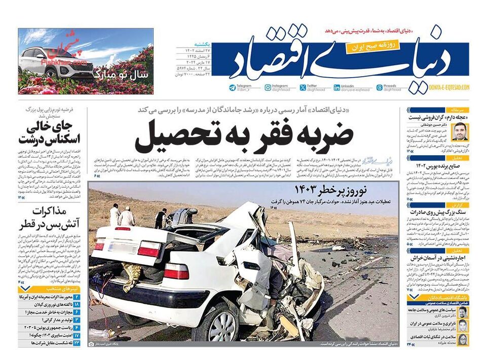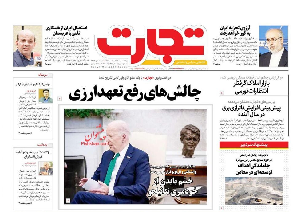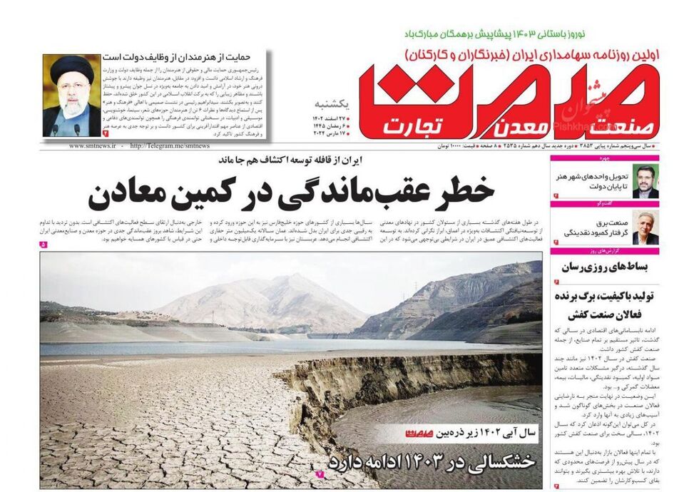 تصاویر روزنامه های امروز یکشنبه ۲۷ اسفند ۱۴۰۲ را مشاهده می‌کنید.