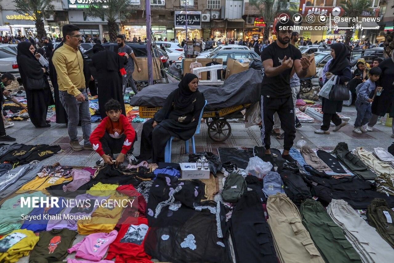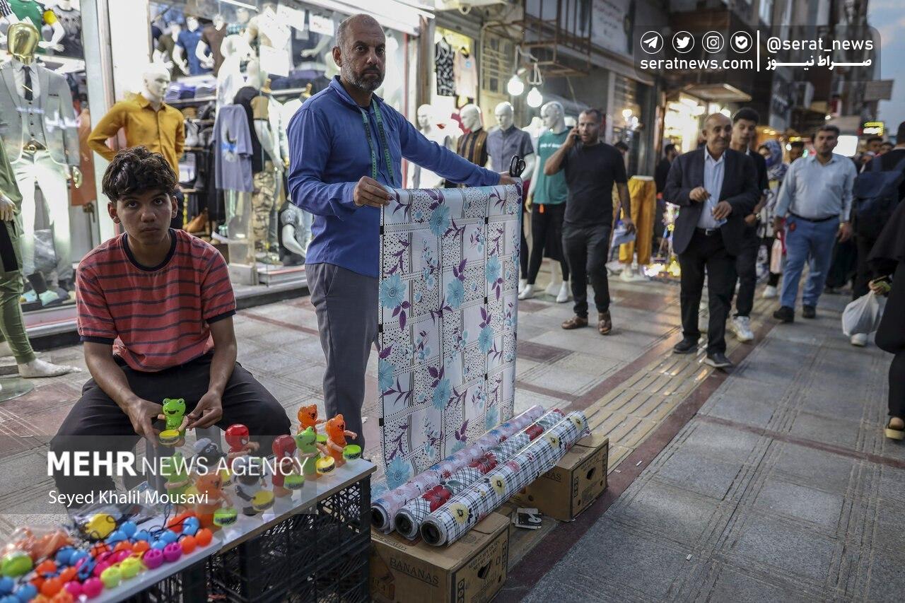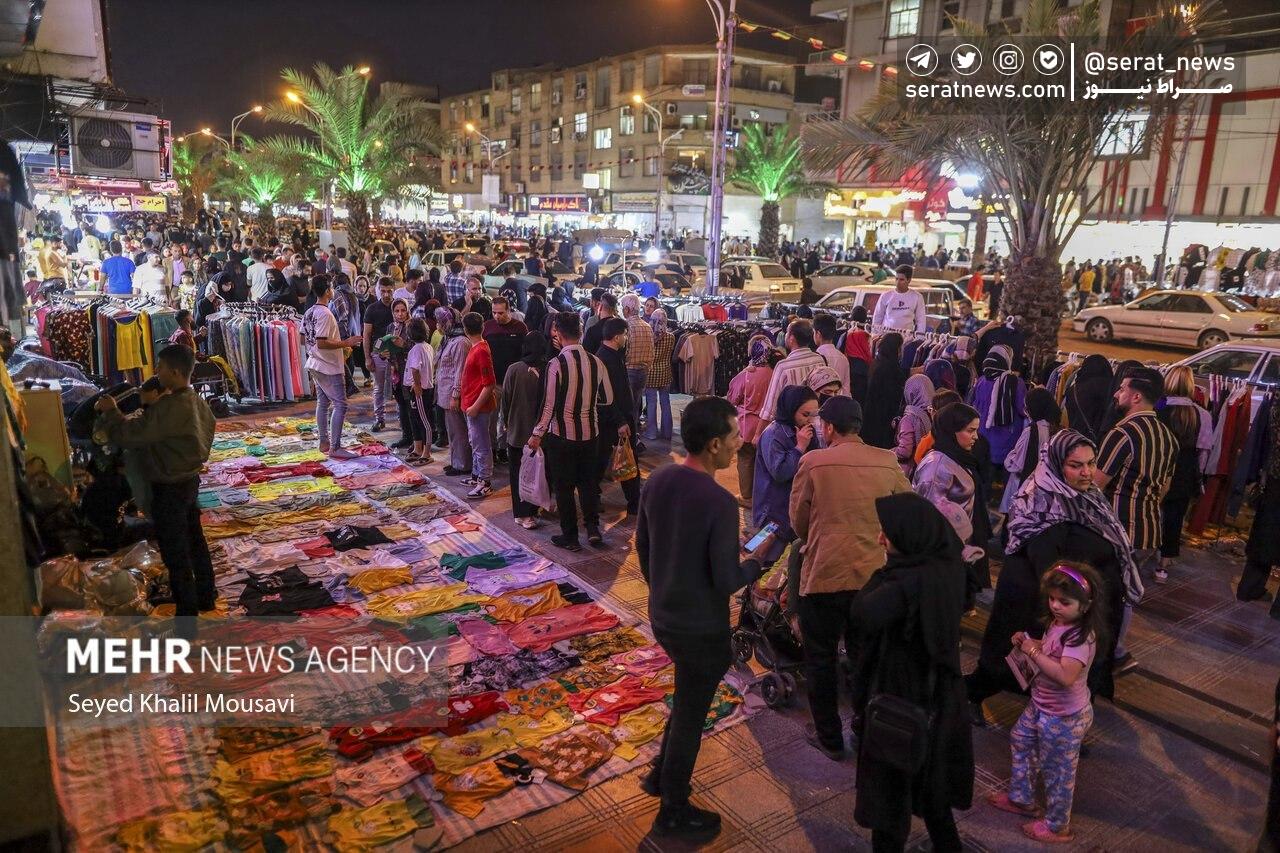 این روزها خیابان نادری اهواز شور و شلوغی خاصی دارد. نه تنها بازار لباس و… رونق گرفته بلکه دستفروشان سر تا سر بازار تا پاسی از شب بساط کرده و نیازهای عیدانه مردم را تأمین میکنند.