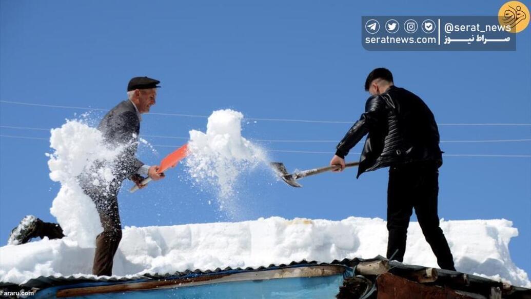 مردم ساکن در روستای هاندره که عمق برف در آن به ۲ متر میرسد، تلاش میکنند تا برف انباشته شده در جلوی منازل و پشتبامها را پاکسازی کنند.