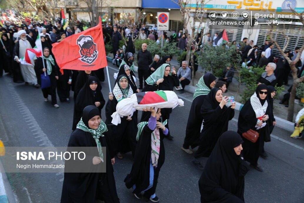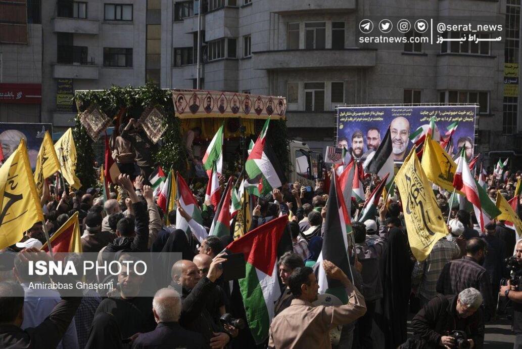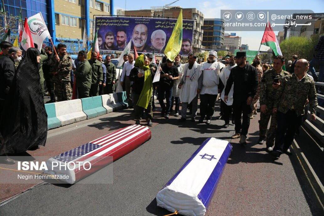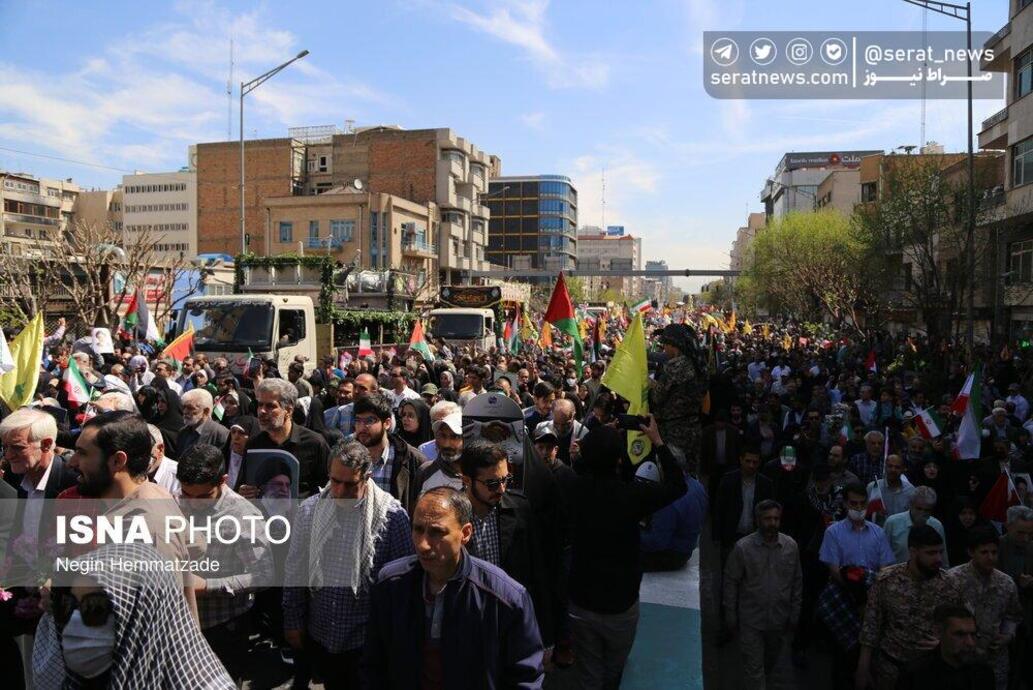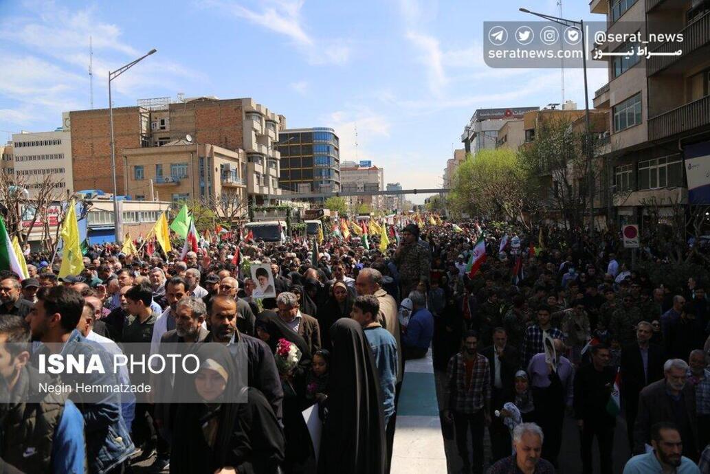 مردم به خیابانها آمدند و، چون دولت جعلی اسرائیل چهره خود را وقیحانهتر نشان داد آنهم با فجیعترین جنایتی که نه تنها دل مردم ایران اسلامی بلکه واکنش مردم کشورهای مختلف اعم از اروپایی، آسیایی و آفریقایی را در حمله ددمنشانه به کنسولگری ایران و همچنین کشتار مردم غزه به همراه داشت ضمن محکومیت این حمله فریاد مرگ بر اسرائیل سر دادند.