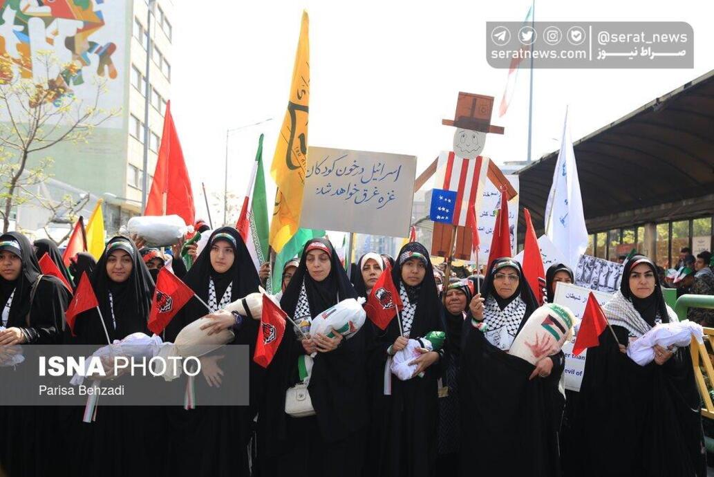 اینک در شرایطی که پایداری و پایبندی ایران و ایرانی و ملتهای رشید مسلمان در پیگیری آرمان فلسطین و آزادی قدس شریف به ثمر نشسته است و پس از نبرد طوفان الاقصی و ناکامی و شکست رژیم گرگ صفت صهیونیستی و حامیان پلید آن بهویژه آمریکای جنایتکار در دستیابی به اهداف شیطانی، با اعجاز الهی و قرآنی مقاومت بیمانند فلسطین و غزه و پشتیبانی مقتدرانه و شجاعانه جبهه مقاومت اسلامی سرمایههای استعماری یکصد ساله صهیونیسم بینالملل و رژیم خبیث صهیونیستی در سراشیبی فروپاشی و زوال قرار گرفته است؛ ما شرکت کنندگان در این راهپیمایی دشمن شکن که مظهر وحدت اسلامی و پشتوانه امنیت ملی میهن اسلامی است، مواضع خود را با بانگ رسای توحیدی الله اکبر و خامنهای رهبر به جهانیان اعلام میداریم: