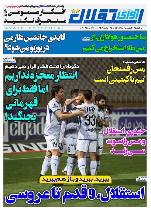 تصاویر صفحه نخست روزنامههای ورزشی امروز شنبه ۱۸ فروردین ۱۴۰۳
