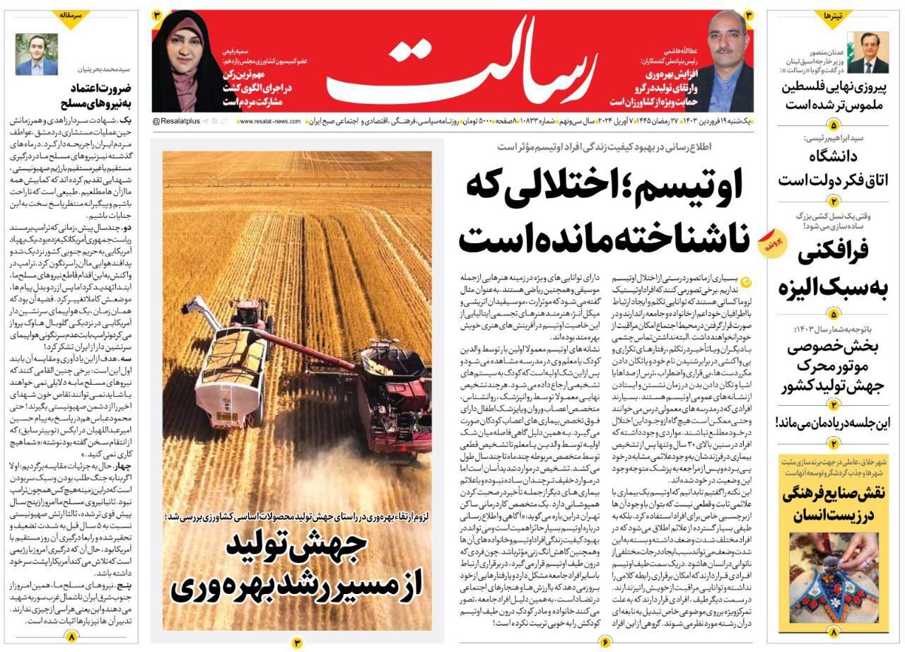 تصاویر صفحه نخست روزنامههای یکشنبه ۱۹ فروردین ۱۴۰۳