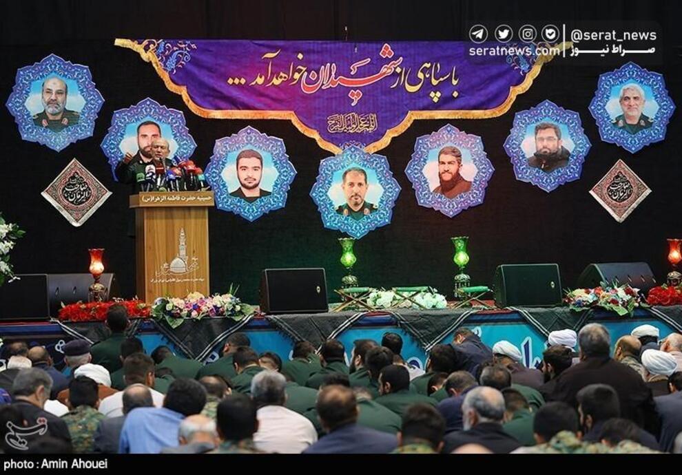 مراسم بزرگداشت شهدای حمله موشکی تروریستی نظامیان صهیونیست به کنسولگری ایران در دمشق یکشنبه ۱۹ فروردین ۱۴۰۳ با حضور مسئولین کشوری و لشگری در حسینیه فاطمه الزهرا سپاه تهران برگزار شد.