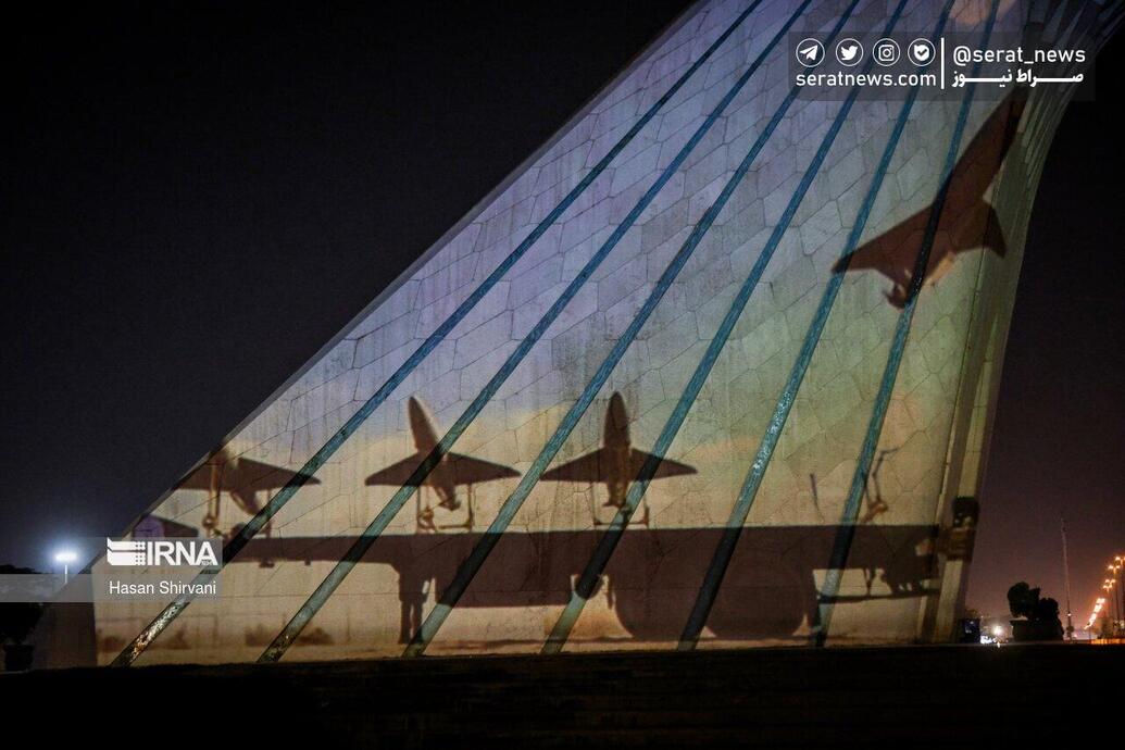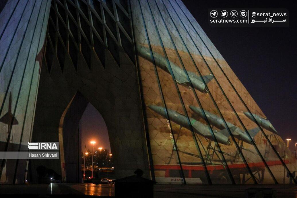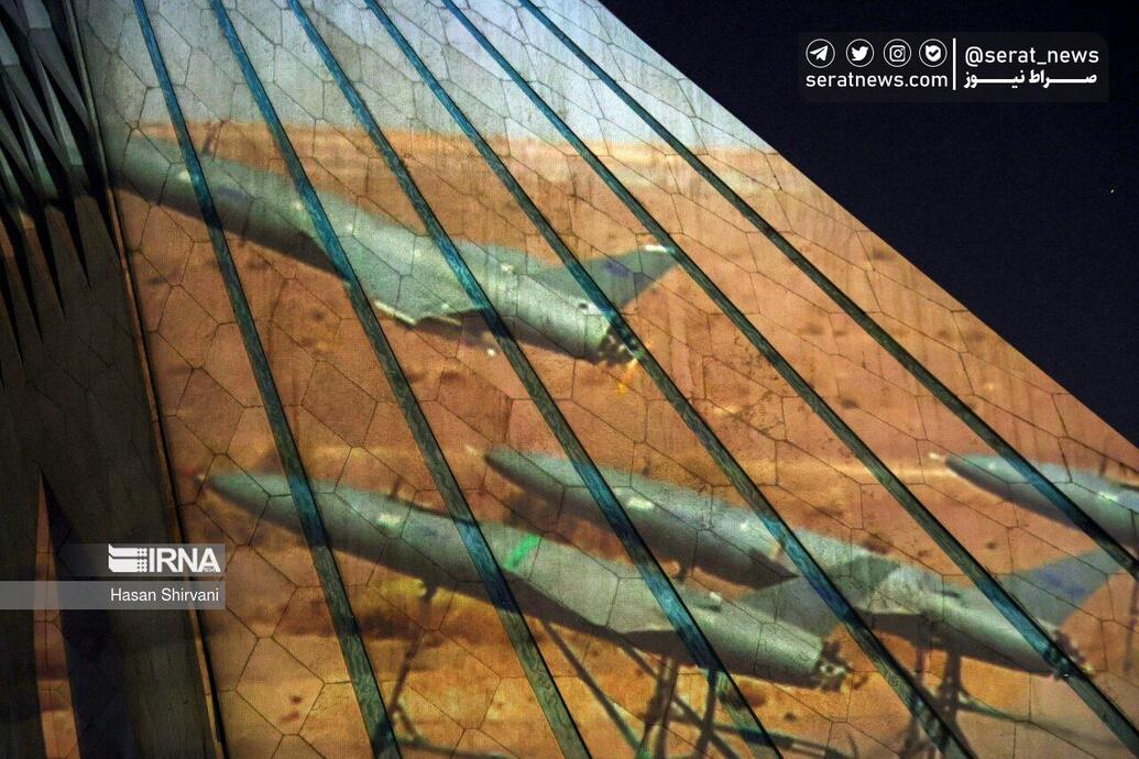 همزمان با حمله پهپادی و موشکی سپاه در پاسخ به جنایتهای متعدد رژیم صهیونیستی، نورپردازی سه بعدی در حمایت از سپاه پاسداران انقلاب اسلامی شامگاه یکشنبه (۲۶ فروردین ۱۴۰۳) بر روی برج آزادی انجام شد.