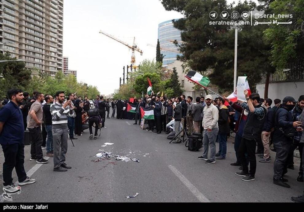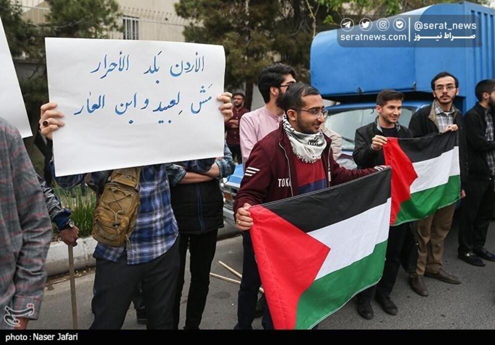 جمعی از دانشجویان و مردم تهران در اعتراض به عملکرد دولت اردن در قبال محاصره غزه و کمک به رژیم صهیونیستی در مقابله با عملیات وعده صادق جمهوری اسلامی ایران مقابل سفارت این کشور عصر امروز سه شنبه ۲۸ فروردین ماه در تهران تجمع کردند.
