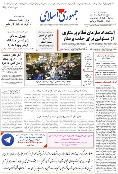 تصاویر/ صفحه نخست روزنامههای چهارشنبه ۵ اردیبهشت ۱۴۰۳