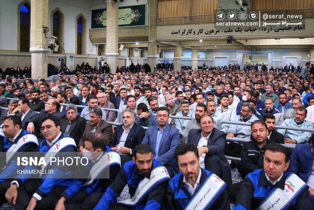 در دومین ماه از سال «جهش تولید با مشارکت مردم» و به مناسبت هفته کار و کارگر، جمعی از کارگران سراسر کشور صبح امروز چهارشنبه ۵ اردیبهشت با حضور در حسینیه امام خمینی (ره) با رهبر انقلاب اسلامی دیدار کردند.