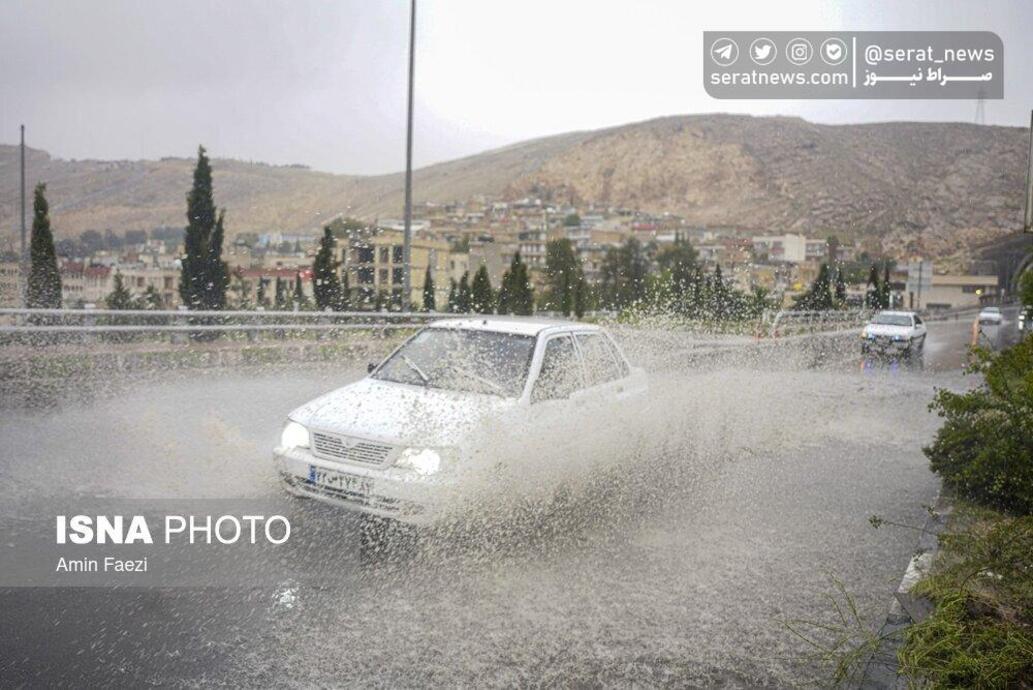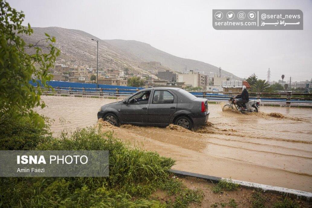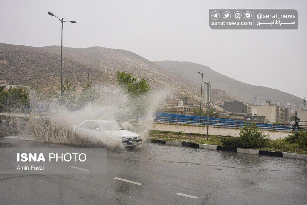 بارش باران از صبح چهارشنبه ۵ اردیبهشت در شیراز و مناطق اطراف آن باعث آبگرفتگی معابر در این مناطق شد.