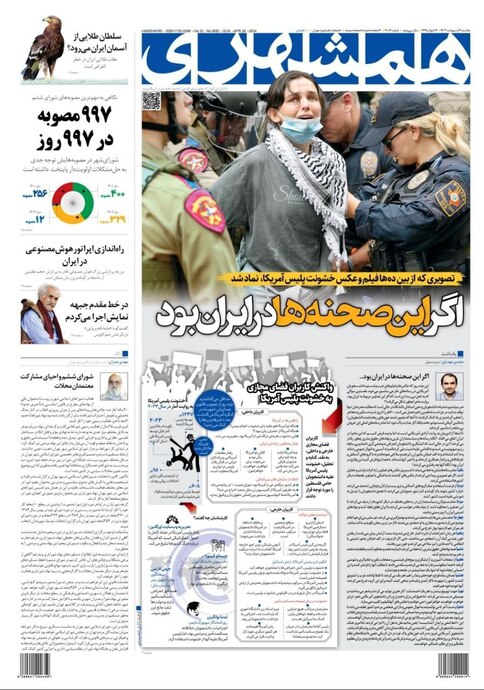 تصاویر/ صفحه نخست روزنامههای یکشنبه ۹ اردیبهشت ۱۴۰۳