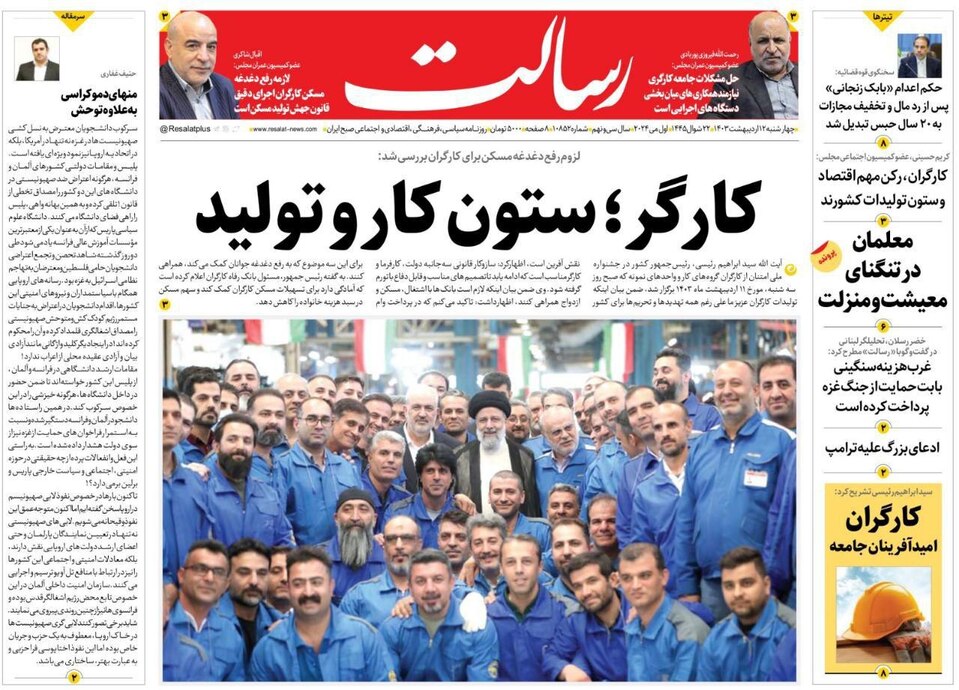 تصاویر/ صفحه نخست روزنامههای چهارشنبه ۱۲ اردیبهشت ۱۴۰۳