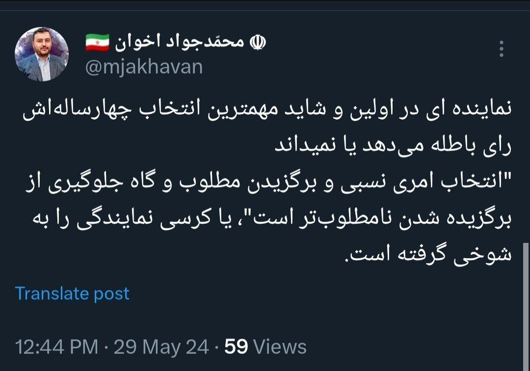 البته آقای ثابتی در یک پست تلگرامی نوشته است که هنوز با جو فضای سیاسی به خصوص روابط درونی در مجلس آشنا نشده و احتمالا این خطای بزرگ را باید به حساب ناآشنایی او نسبت به مجلس گذاشت! برخی کاربران در شبکههای اجتماعی (همان جایی که ثابتی از درونش رشد سیاسی کرد) به رای باطله واکنش نشان دادهاند که در نوع خود جالب توجه است، نماینده جوان تهران در همین ابتدای کار زیر ضرب رفته تا بداند سیاست صبر در سیاست ضرر ندارد.