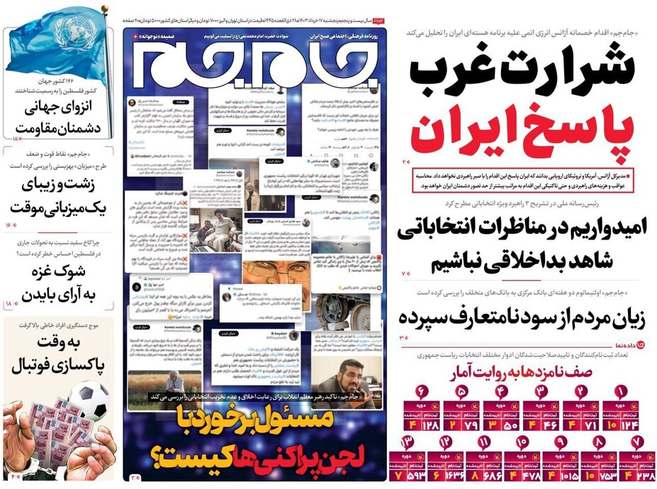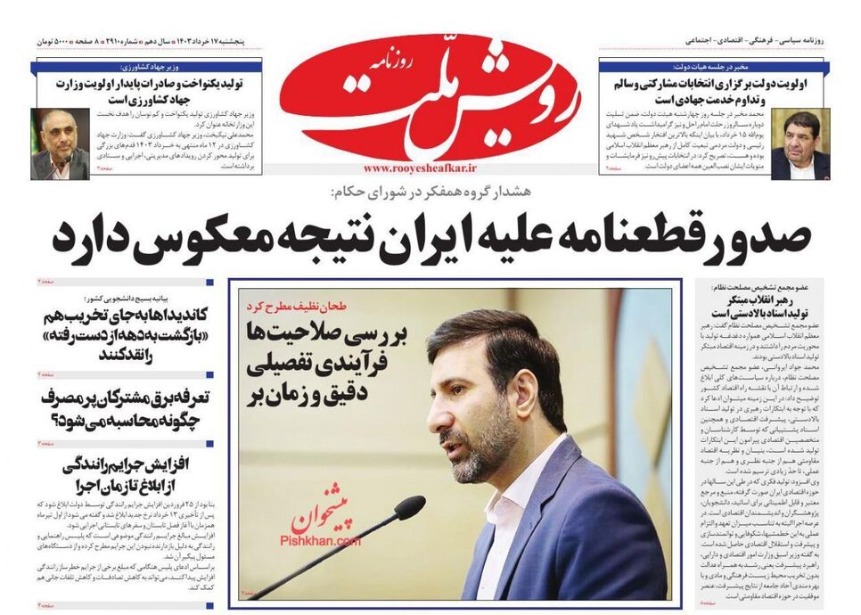 تصاویر| صفحه نخست روزنامههای پنجشنبه ۱۷ خرداد ۱۴۰۳