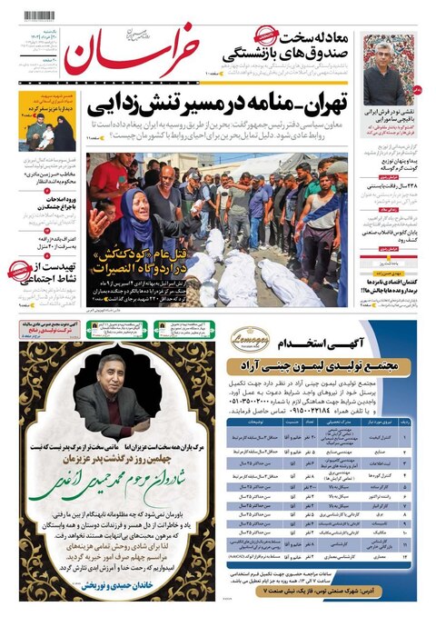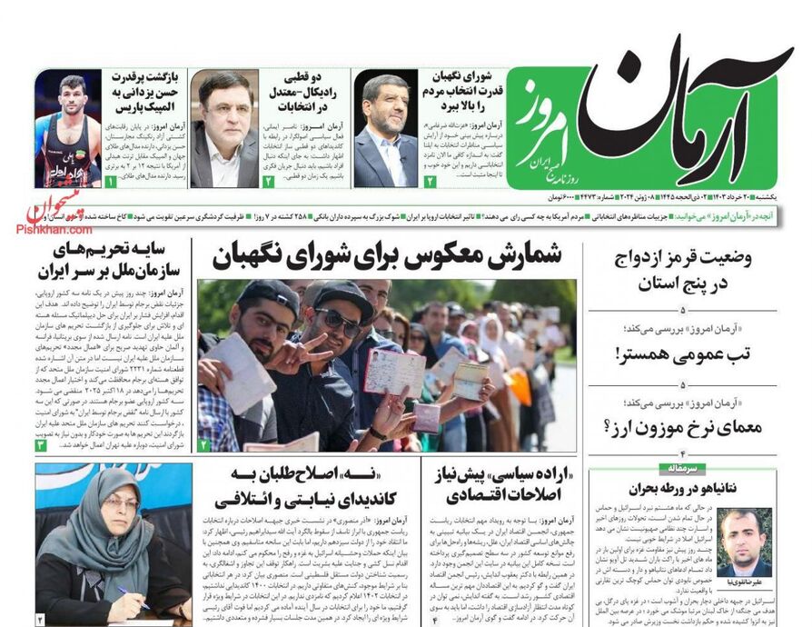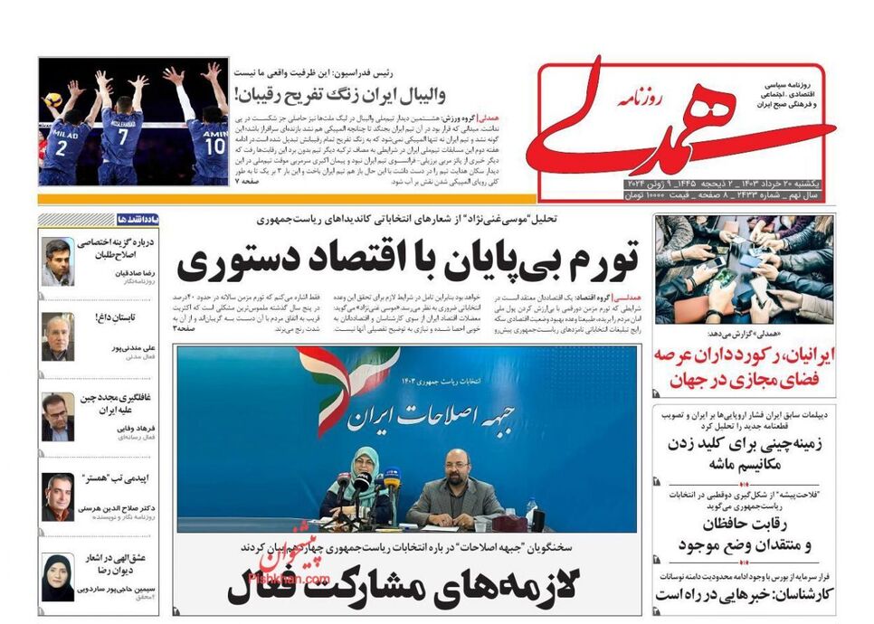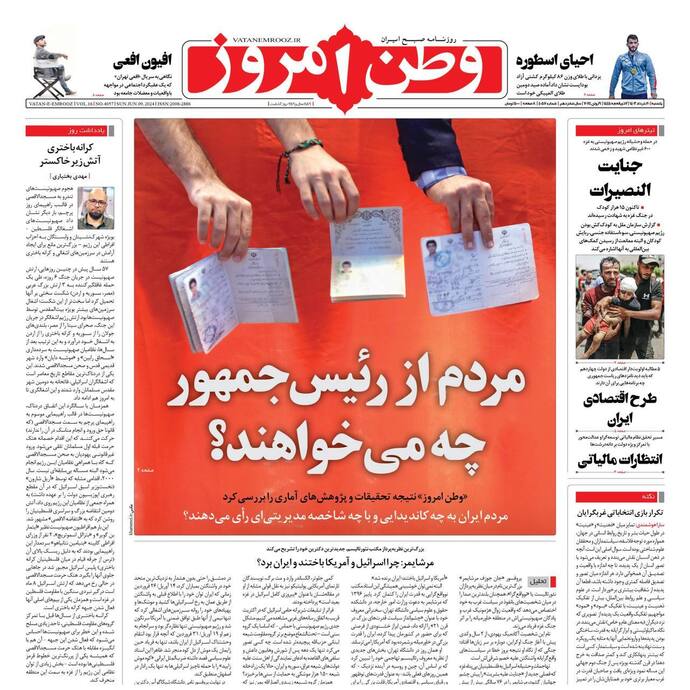 تصاویر| صفحه نخست روزنامههای یکشنبه ۲۰ خرداد ۱۴۰۳