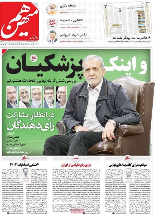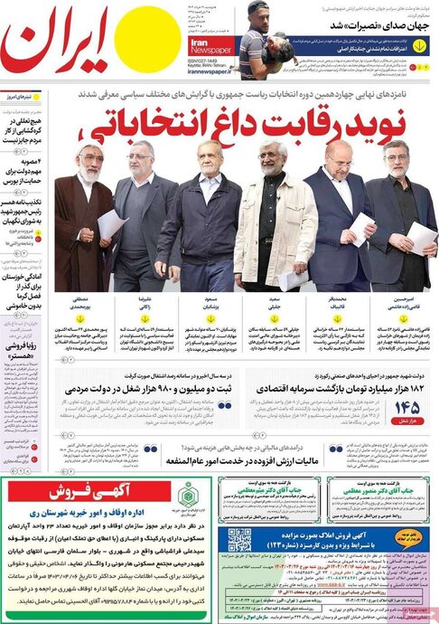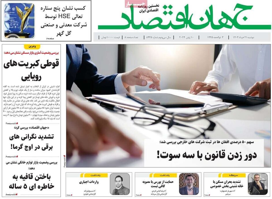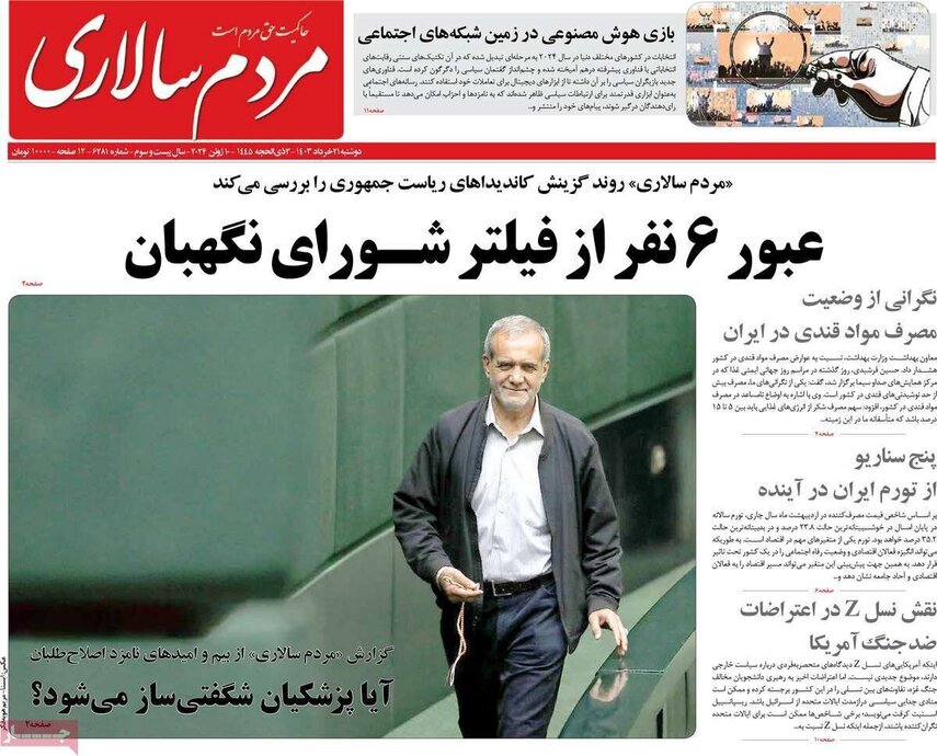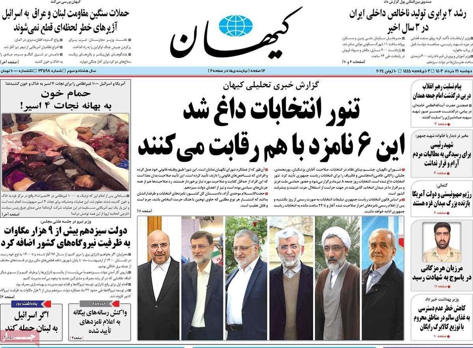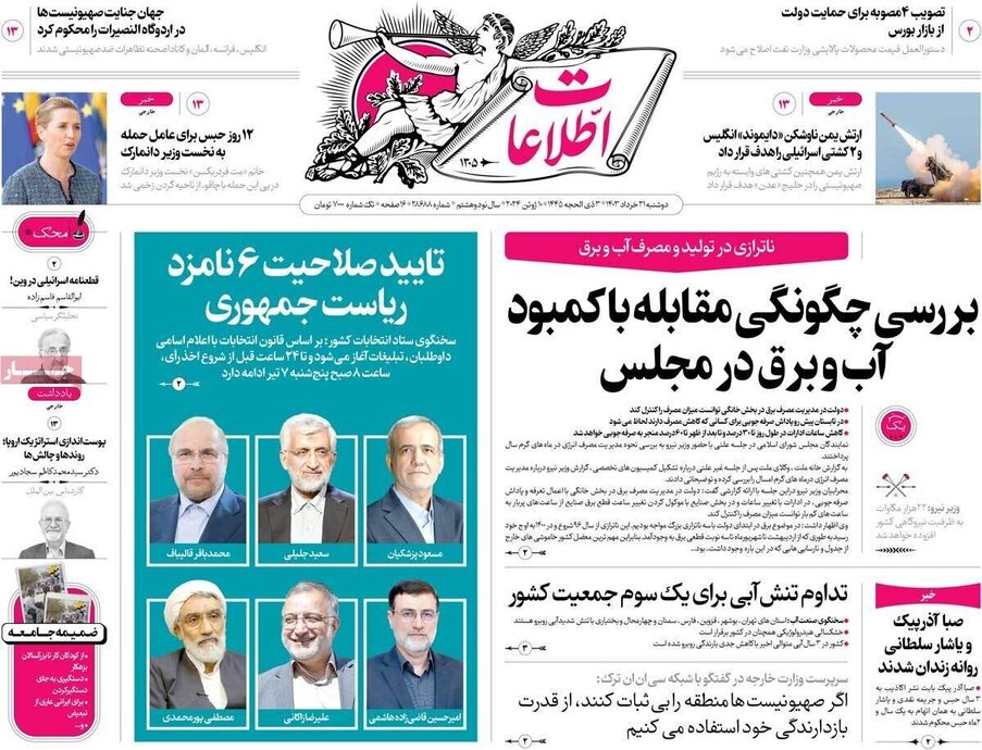 تصاویر| صفحه نخست روزنامههای دوشنبه ۲۱ خرداد ۱۴۰۳