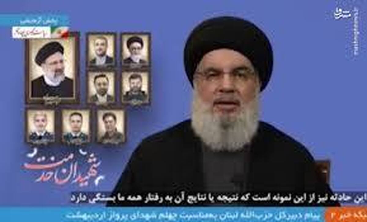 سید حسن نصرالله دبیر کل حزب الله لبنان در مراسم چهلم شهدای خدمت: ملت ایران از طریق حضور مستقیم خود به الگویی برای تمام جهان تبدیل شد.