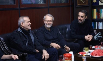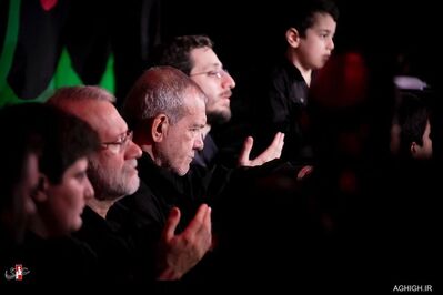 تصاویر| پزشکیان و لاریجانی در هیئت ریحانهالنبی(س)