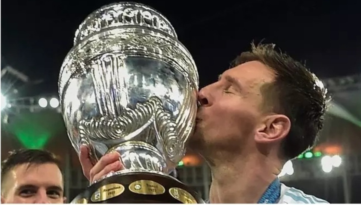 فیلم | لحظه بالا بردن جام قهرمانی کوپا آمهریکا توسط لیونل مسی کاپیتان آرژانتین
