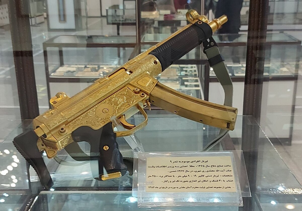 تیربار انفرادی تندر ۹، مطلا، ساخت صنایع دفاع در سال ۱۳۶۷، اهدایی به وزیر وقت اطلاعات (محمدی ریشهری).موزه حضرت عبدالعظیم